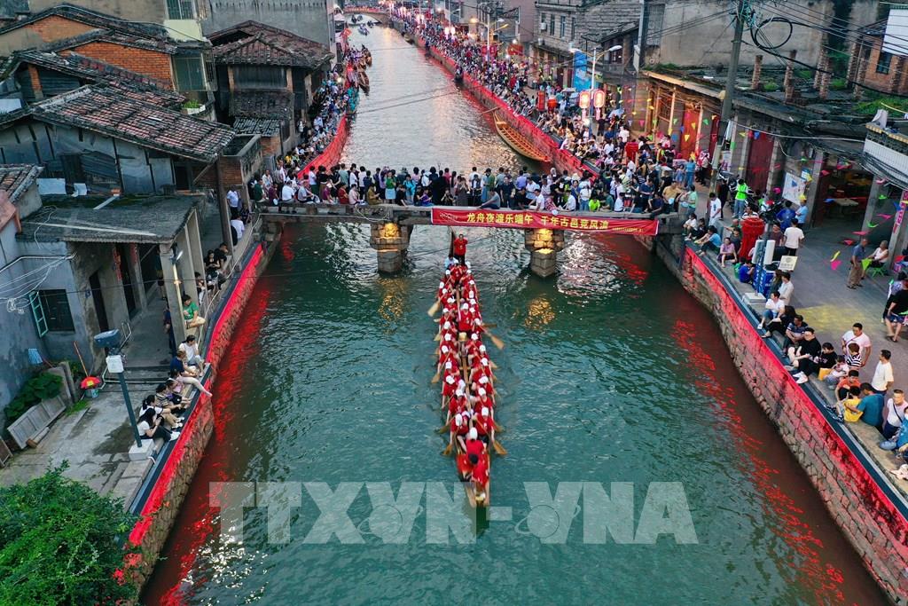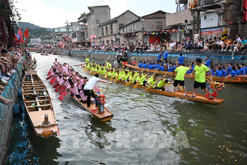 Người dân tham gia lễ đua thuyền rồng truyền thống có tuổi đời hơn 600 năm, tại Phúc Châu, tỉnh Phúc Kiến ngày 20/6/2023. Ảnh: THX/TTXVN