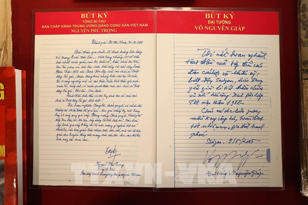 Bút ký của Đại tướng Võ Nguyên Giáp và Tổng Bí thư Nguyễn Phú Trọng khi đến thăm di tích. Ảnh: Thanh Tân - TTXVN