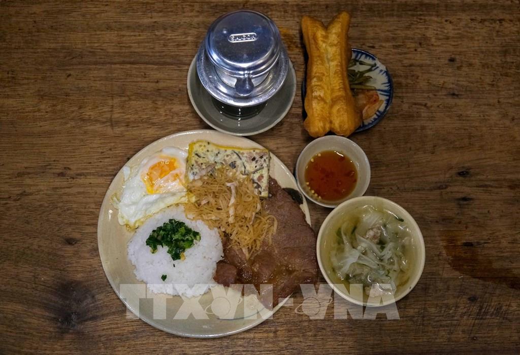 Cà phê Đỗ Phủ và cơm tấm Đại Hàn phục vụ du khách khi tham quan tại Di tích lịch sử Hộp thư bí mật và hầm nổi của chiến sĩ Biệt động Sài Gòn. Ảnh: Thanh Liêm - TTXVN