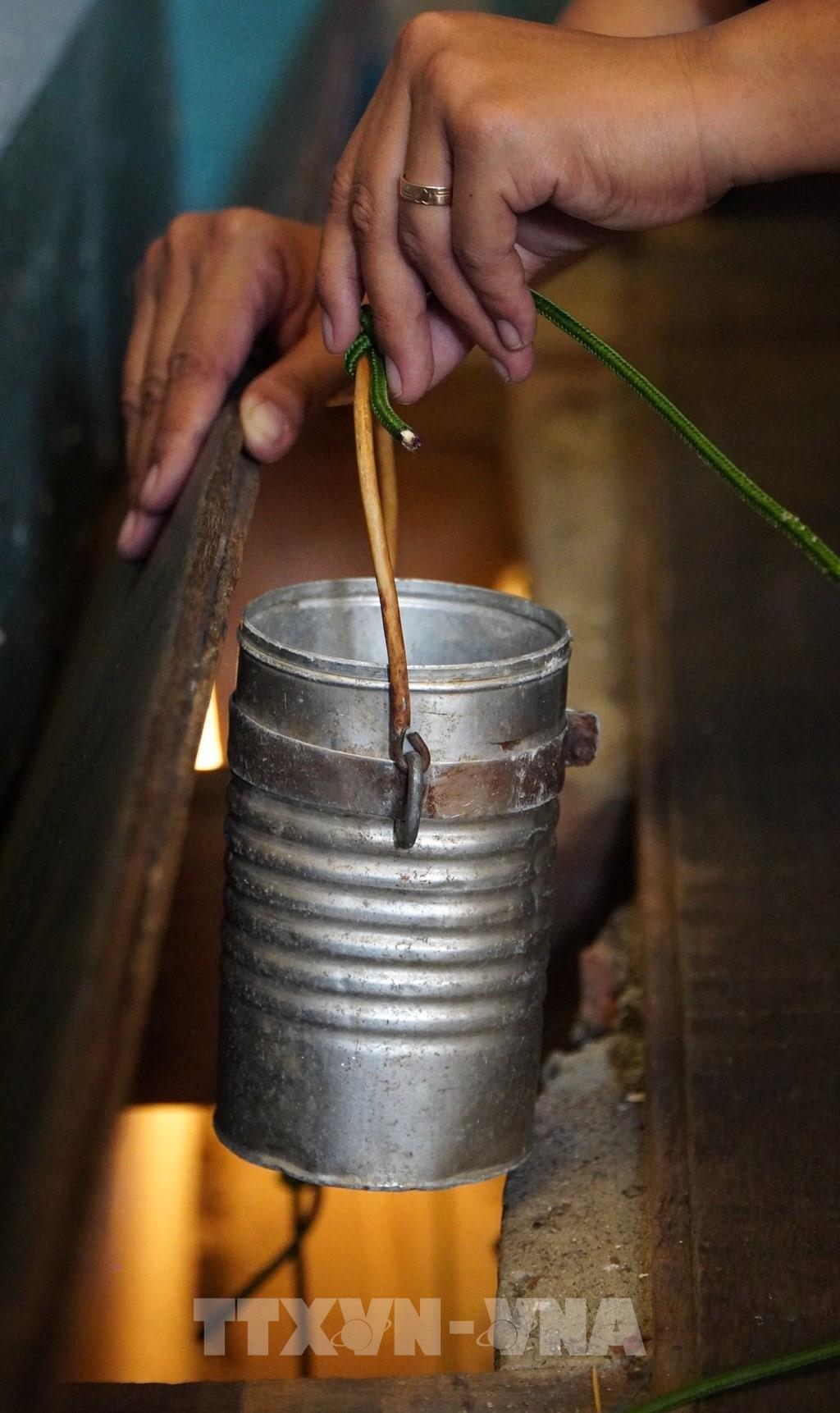 Chiếc lon guigoz của Pháp dùng để cất thư mật thời kỳ hoạt động của các chiến sĩ biệt động Sài Gòn tại khu di tích. Ảnh: Nhựt An - TTXVN