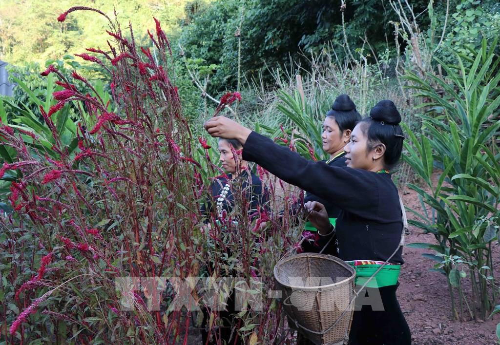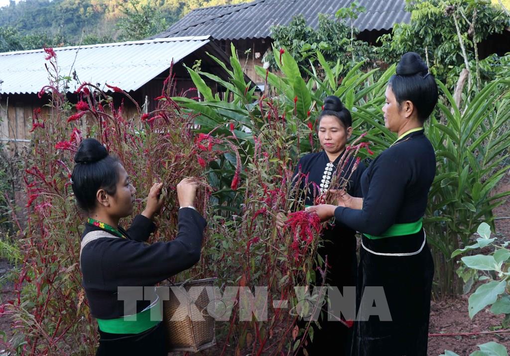 Đồng bào dân tộc Cống coi hoa màu gà là “hoa thiêng”, mang nhiều ý nghĩa, là biểu tượng cho sự may mắn, tốt đẹp đến với mọi người. Ảnh: Nguyễn Xuân Tiến-TTXVN
