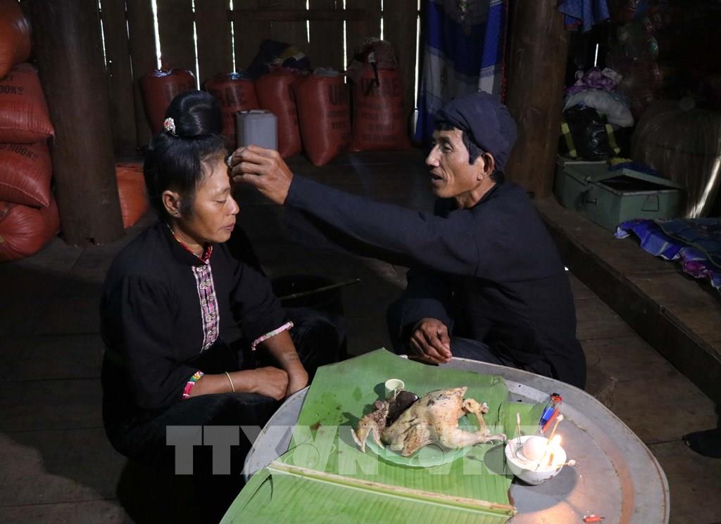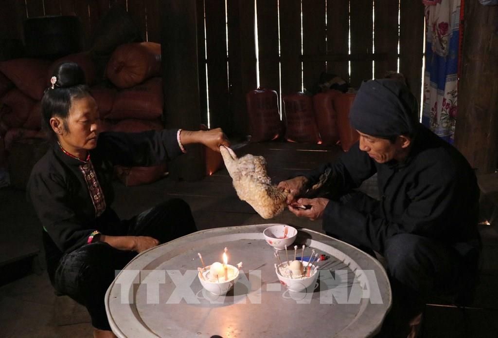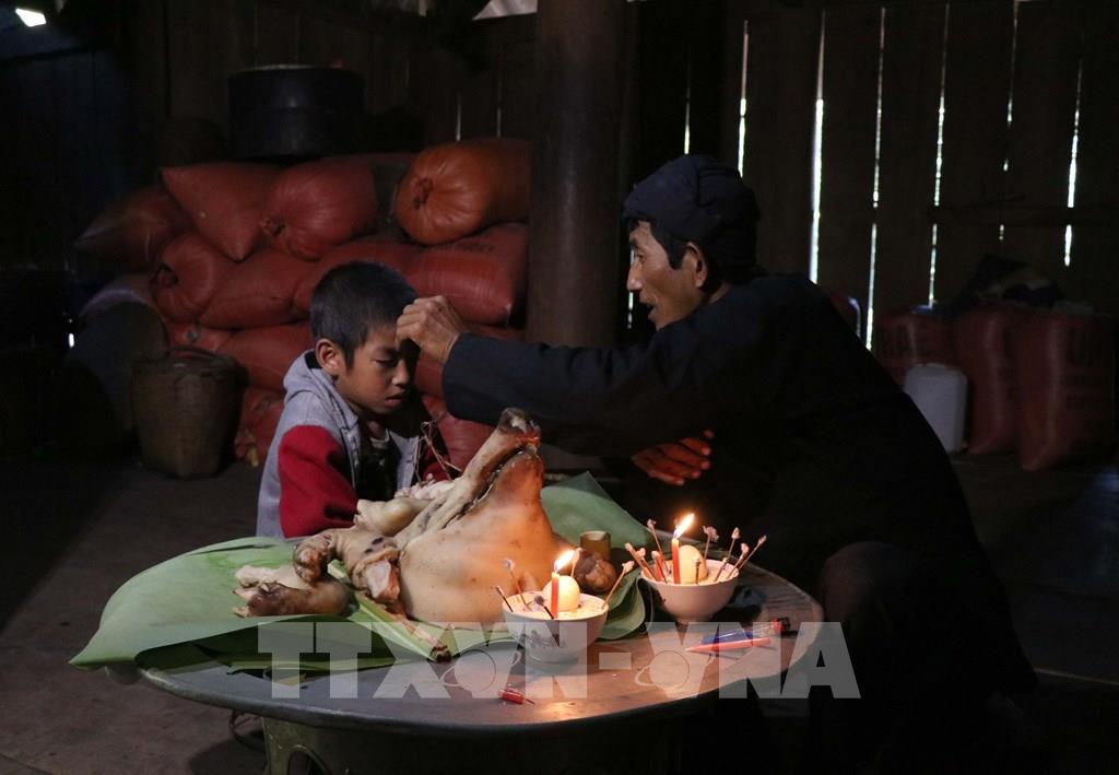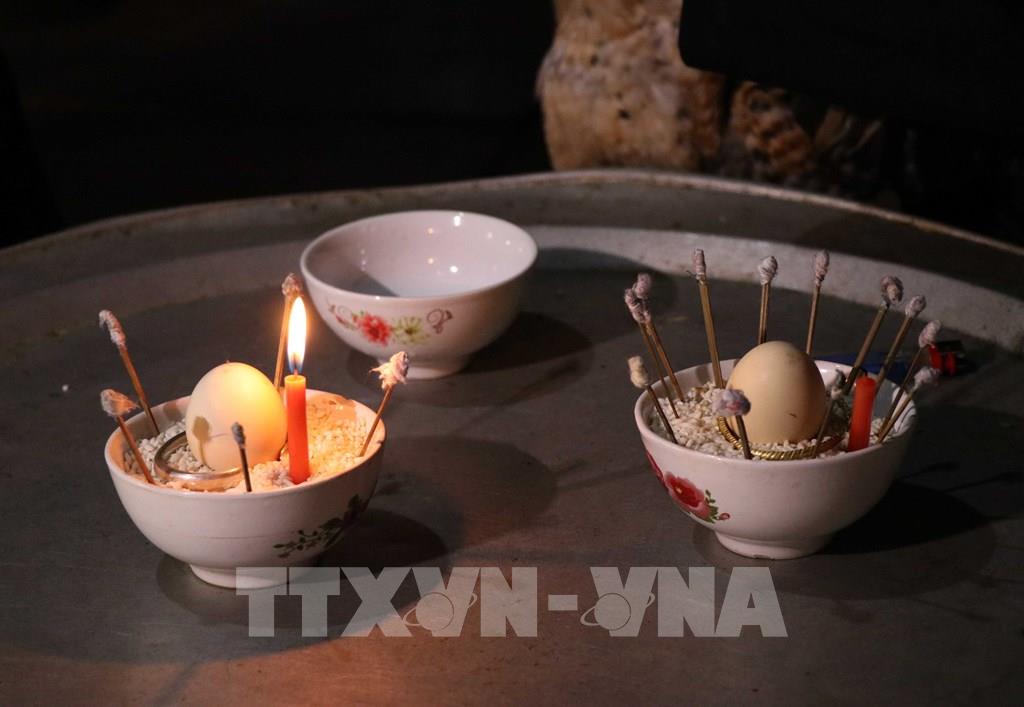 Lễ thức để cầu mong tổ tiên, thần linh phù hộ, ban cho sức khỏe dồi dào cho người dân trong năm mới. Ảnh: Nguyễn Xuân Tiến-TTXVN