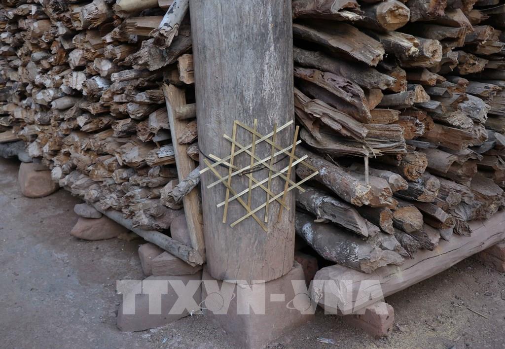 Biểu tượng “Me khá” được cắm ở nhiều vị trí trong bản, gửi thông điệp đến mọi người không được tự do ra, vào bản. Ảnh: Nguyễn Xuân Tiến-TTXVN