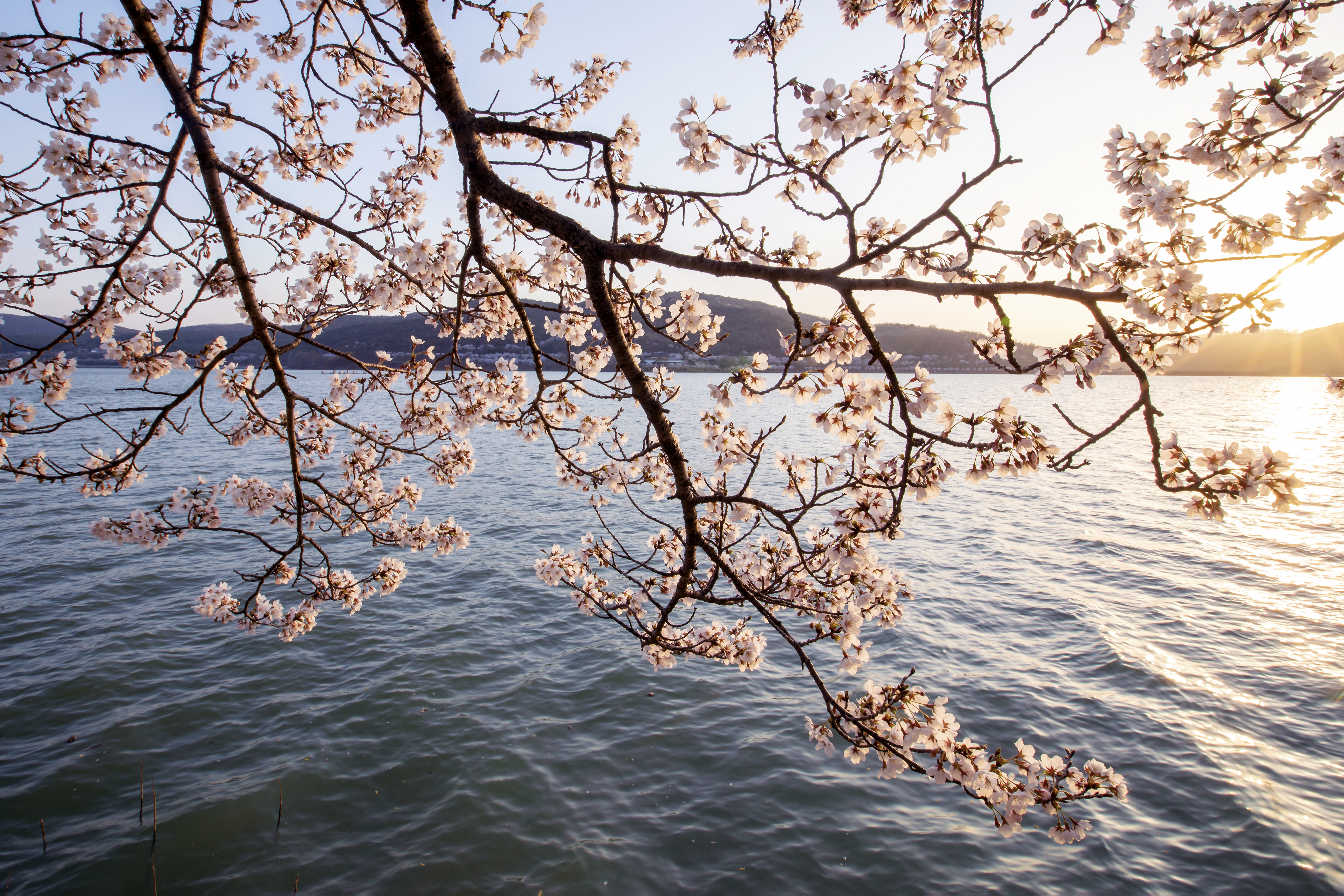 Hoa anh đào khoe sắc ven Hồ Bomun ở trung tâm thành phố Gyeongju. Ảnh Anh Nguyên - TTXVN