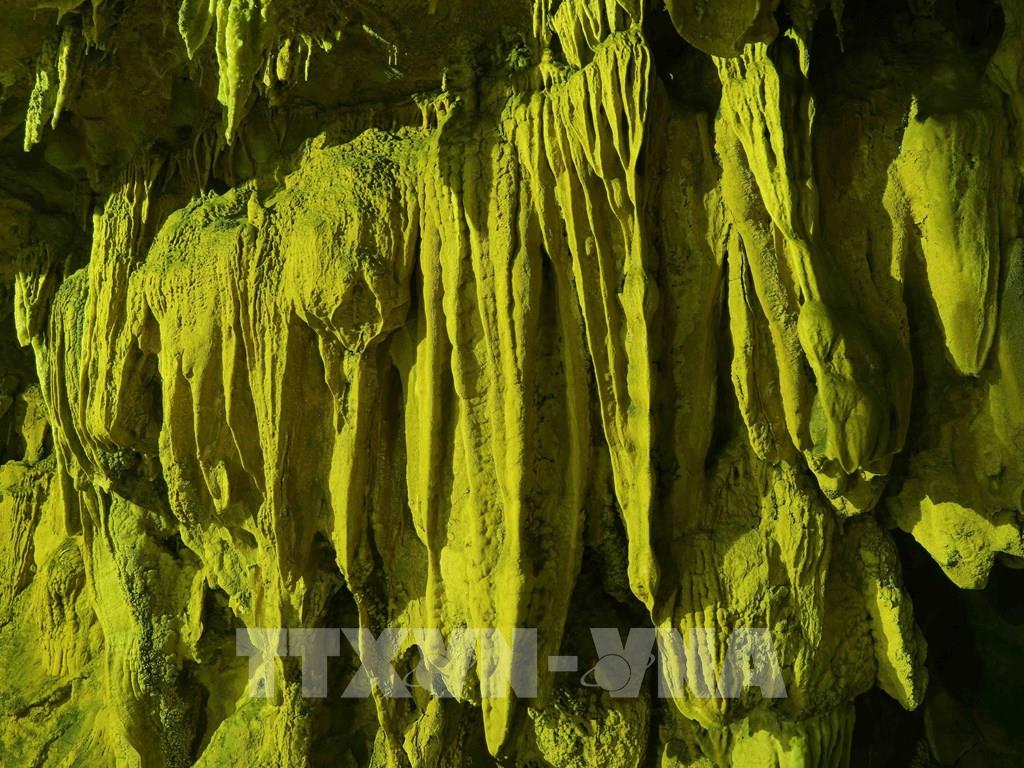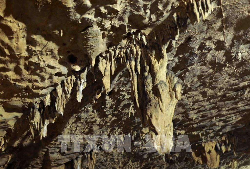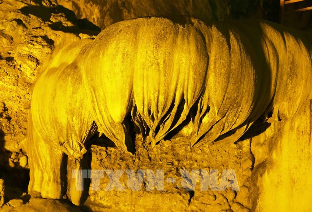 Khối măng nhũ nhìn vào trông như một thác nước. Ảnh: Vũ Sinh – TTXVN