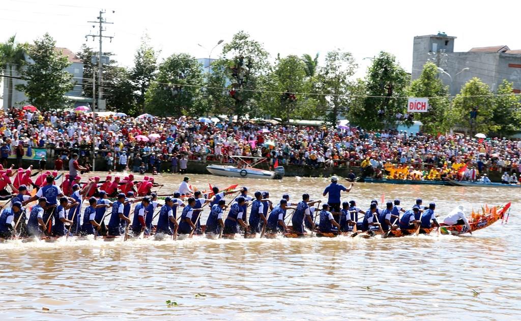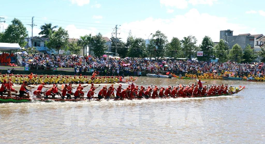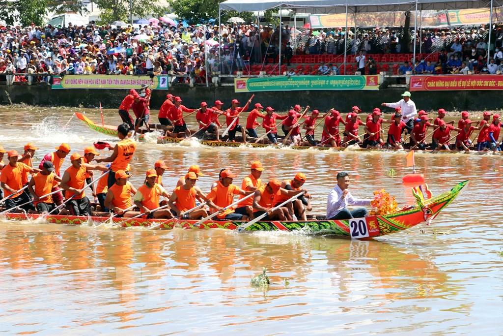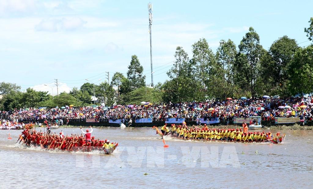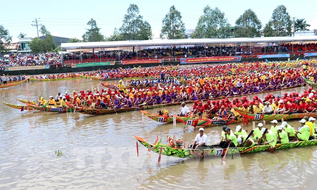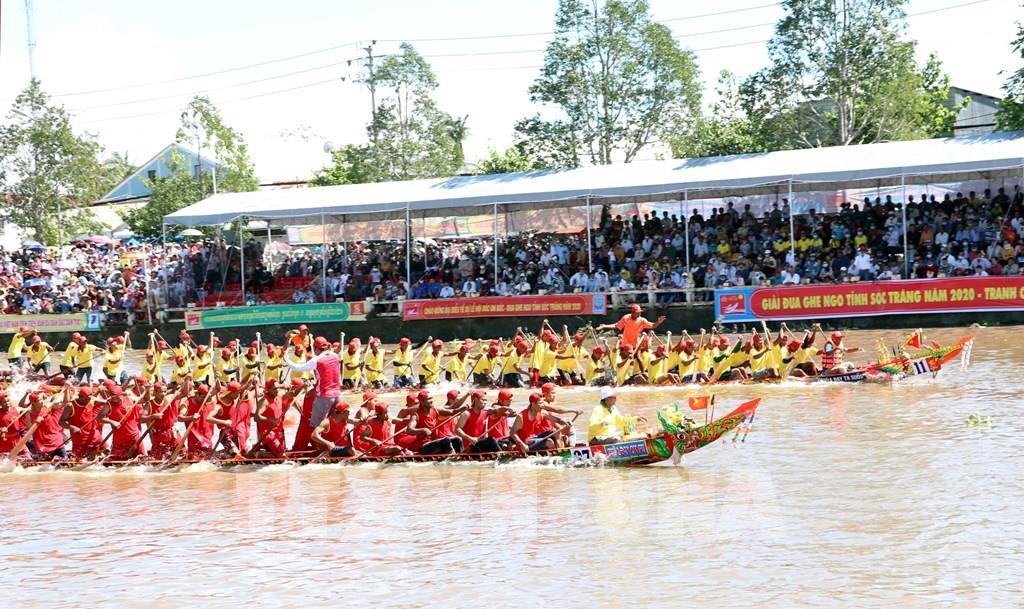 Các trận đua tài quyết liệt trong ngày đầu thi đấu giải đua ghe Ngo Sóc Trăng 2020. Ảnh: Trung Hiếu - TTXVN