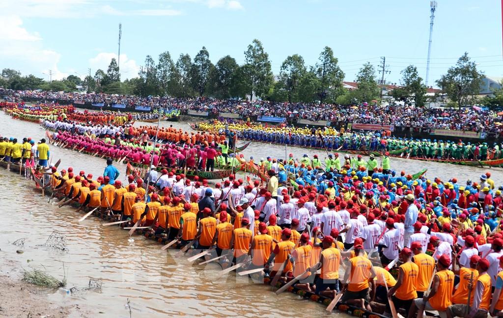 Các đội ghe Ngo tập kết chuẩn bị thi đấu tại giải đua ghe Ngo Sóc Trăng 2020. Ảnh: Trung Hiếu - TTXVN