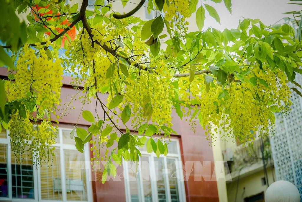 Hoa muồng hoàng yến bung nở giữa phố núi Điện Biên. Ảnh: Xuân Tư – TTXVN