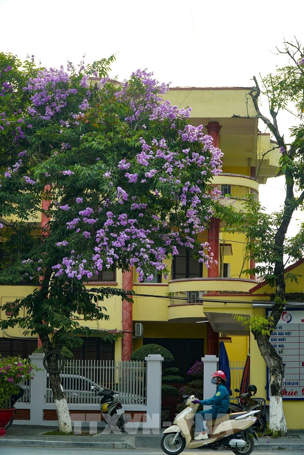 Hình ảnh những chùm hoa bằng lăng tím trên phố là dấu hiệu của mùa hè đang sắp đến gần. Ảnh: Xuân Tư - TTXVN