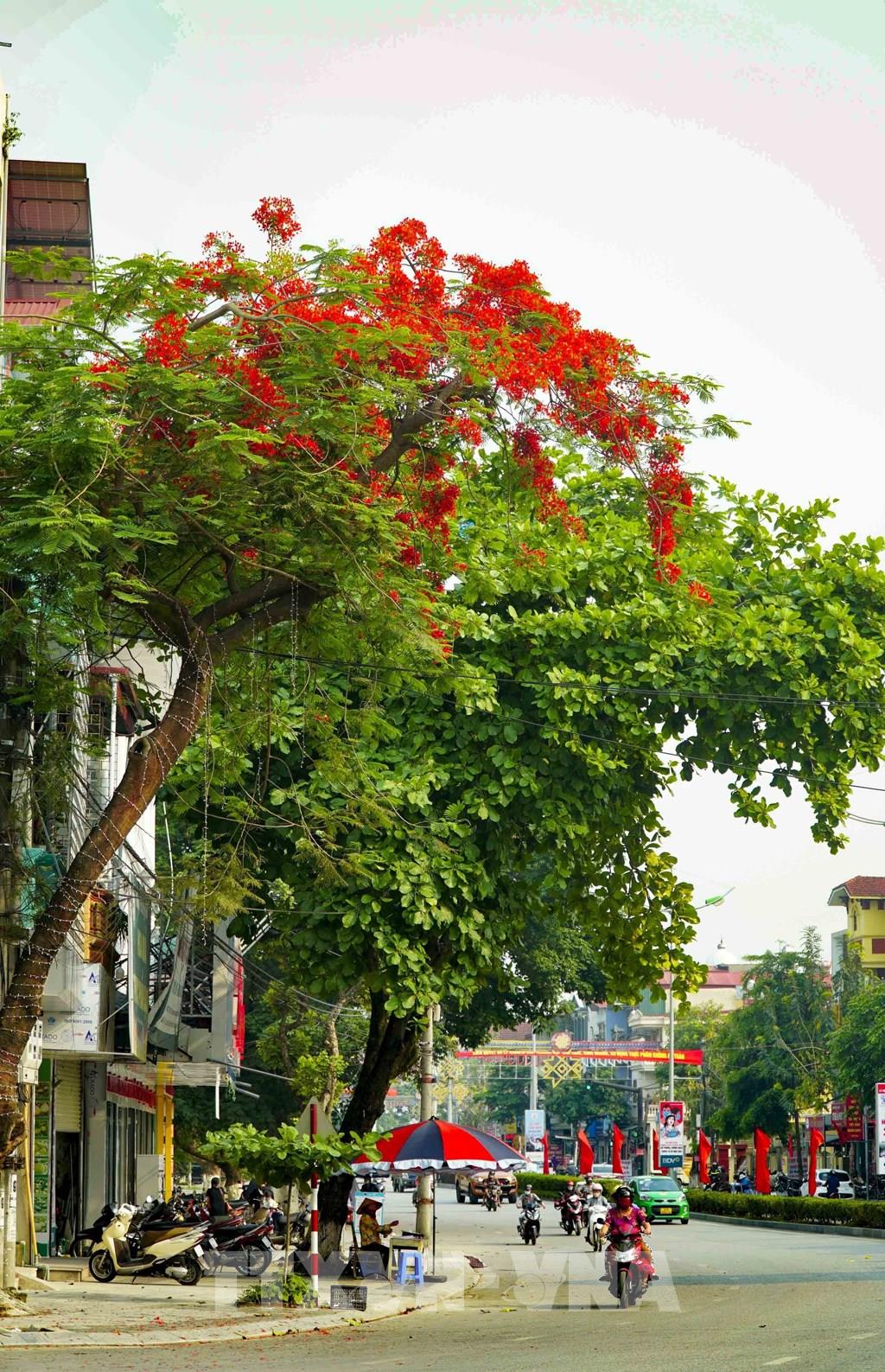 Một cây hoa phượng nở đỏ trên đường Võ Nguyên Giáp. Ảnh: Xuân Tư – TTXVN