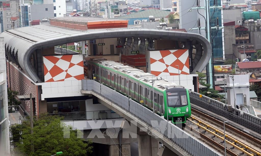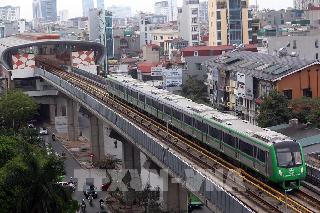 Sau thời gian vận hành thử, nếu đạt các yêu cầu kỹ thuật, tuyến đường sắt đô thị Cát Linh-Hà Đông sẽ được nghiệm thu và bàn giao cho thành phố Hà Nội. Ảnh: Huy Hùng - TTXVN