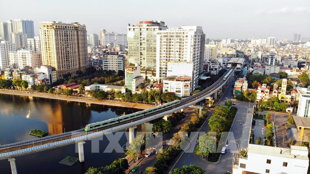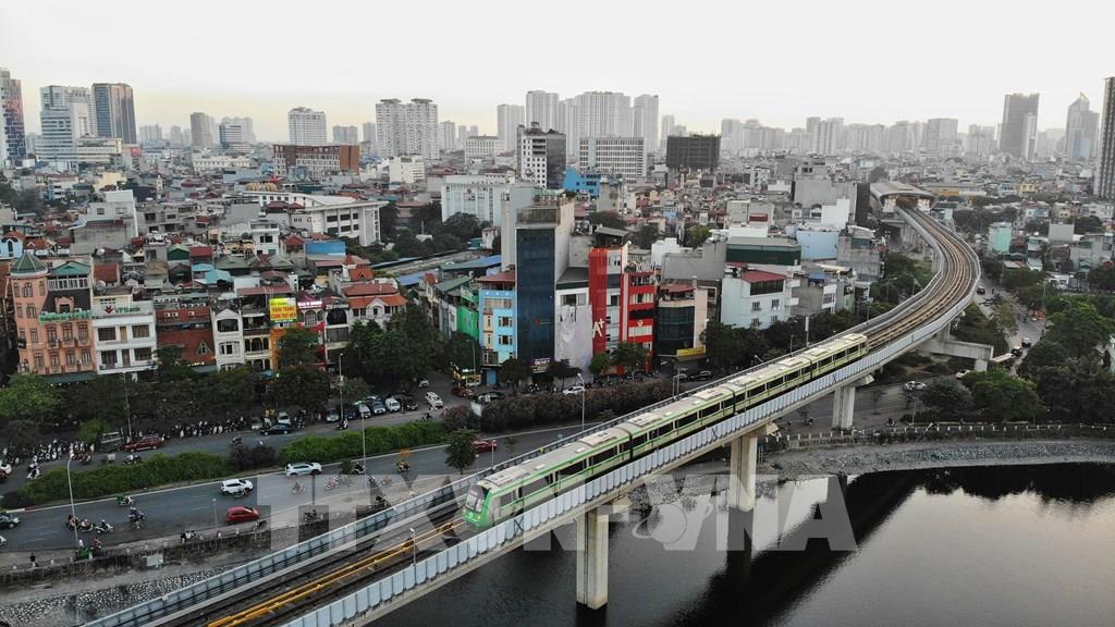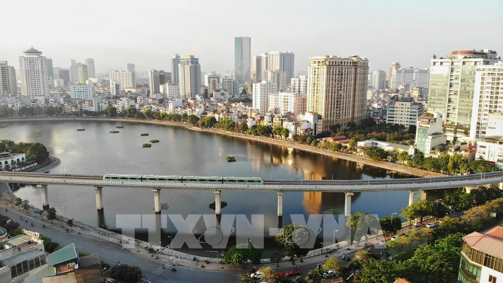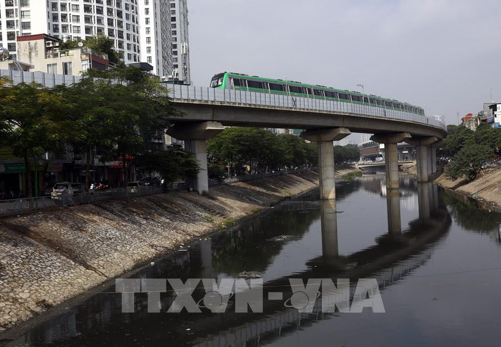 Đường sắt đô thị Cát Linh-Hà Đông có chiều dài tuyến đi trên cao là 13,5km (từ Cát Linh đi Hà Đông) 12 nhà ga trên cao. Ảnh: Huy Hùng - TTXVN