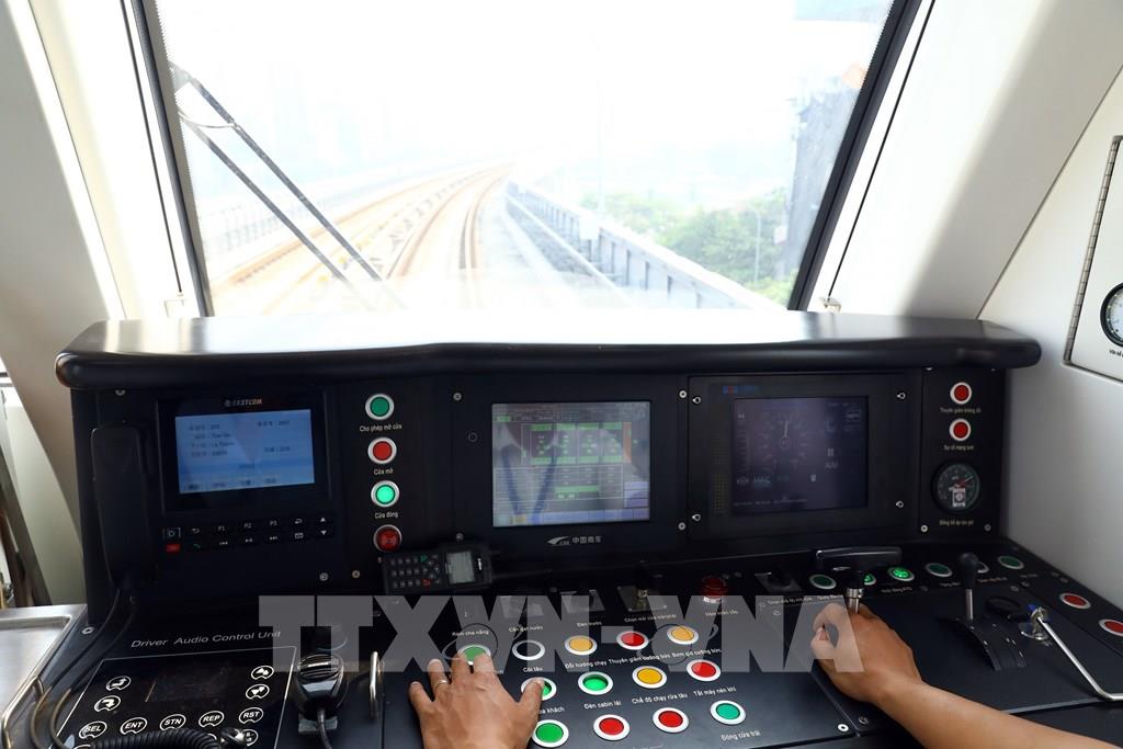 Đoàn tàu chạy với vận tốc thiết kế tối đa 80km/giờ, vận tốc bình quân khai thác 35km/giờ, khai thác với tần suất vận chuyển khoảng 2 phút/chuyến. Ảnh: Huy Hùng - TTXVN