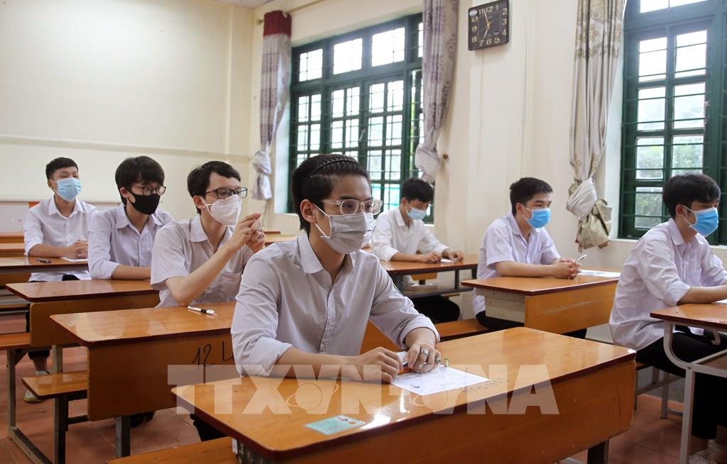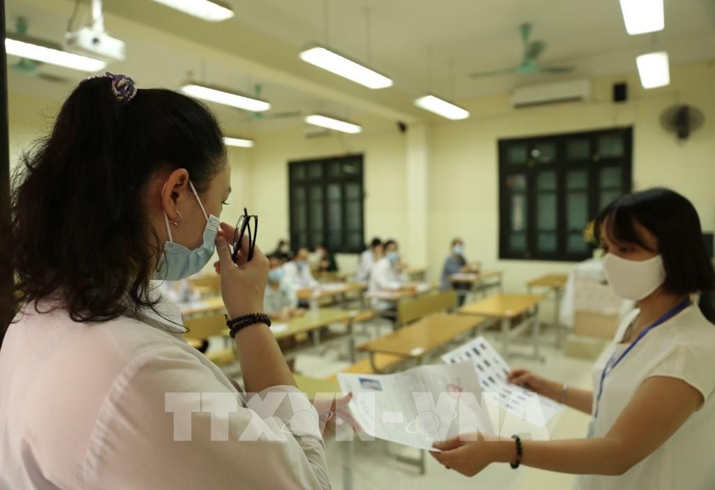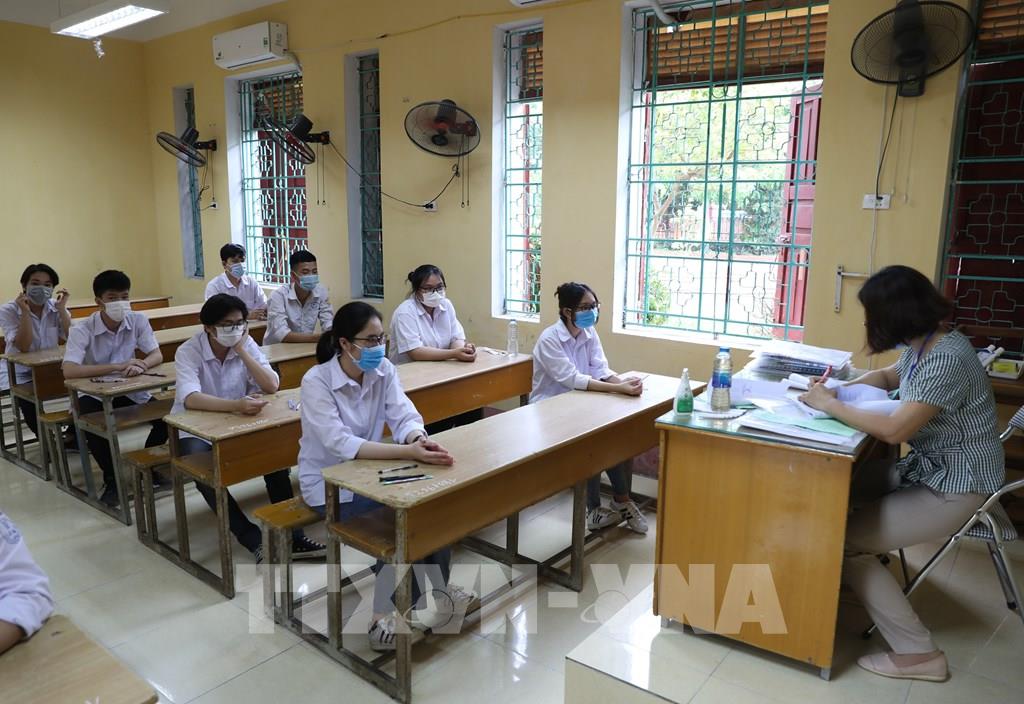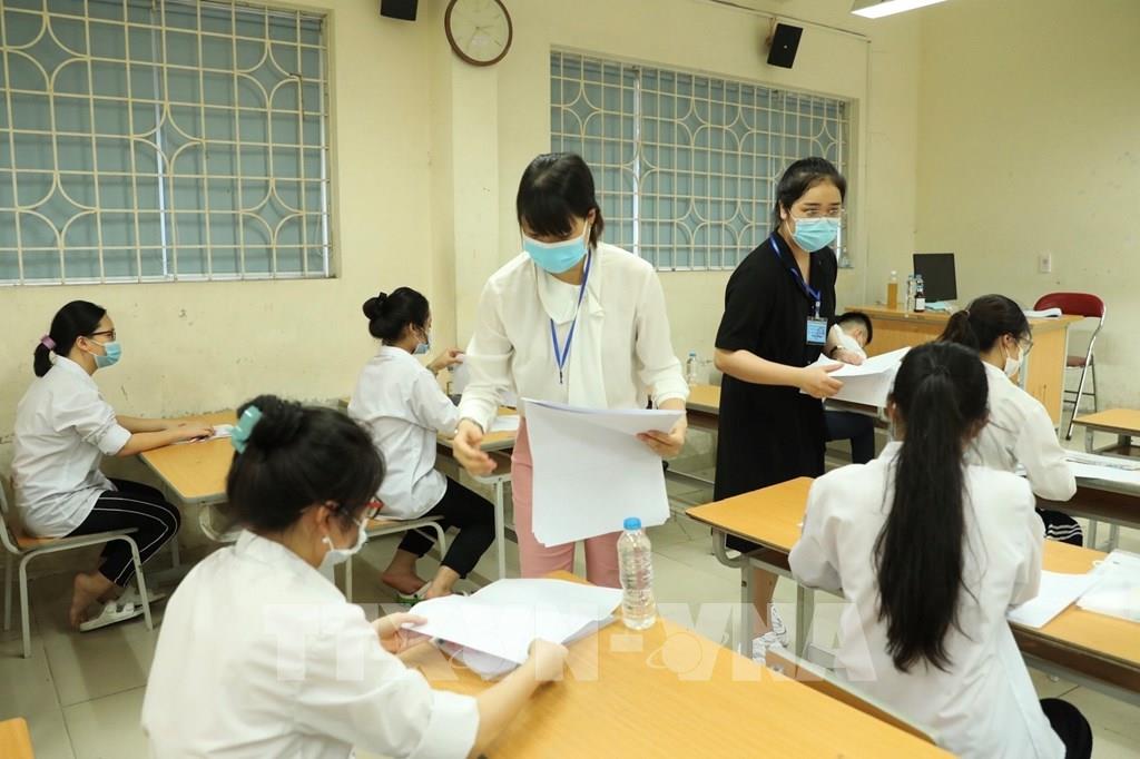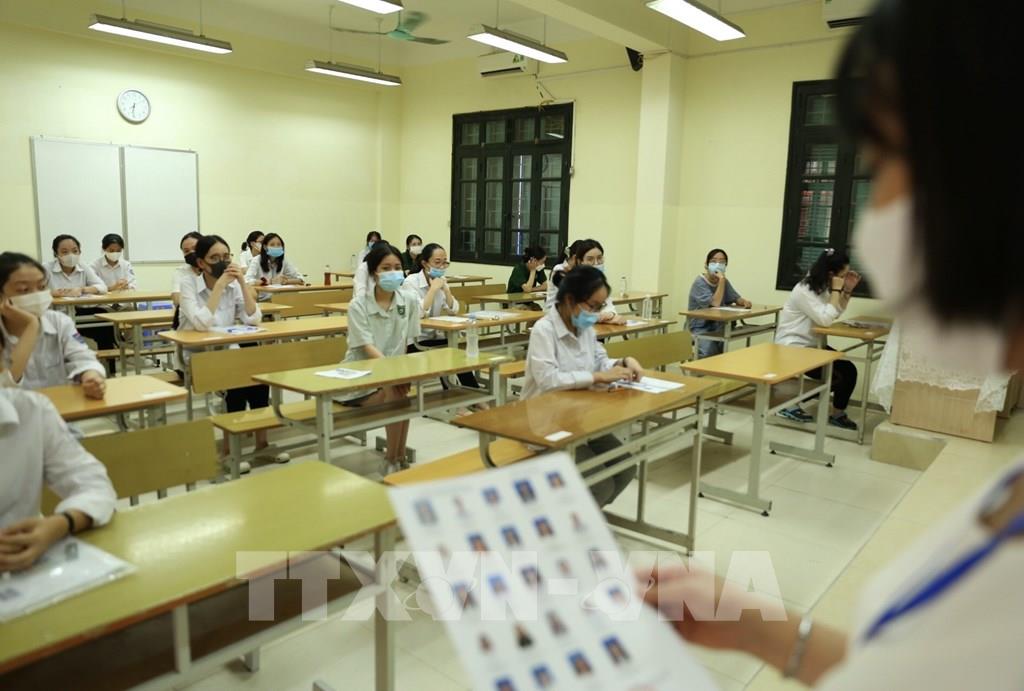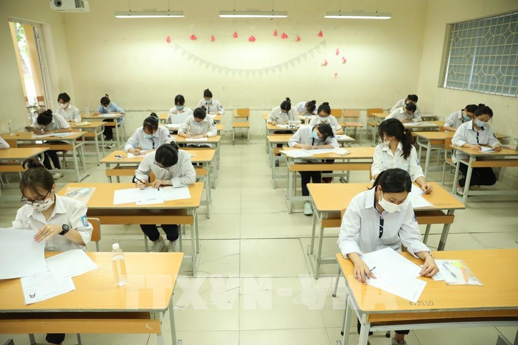 Thí sinh chuẩn bị làm bài môn thi Ngữ Văn tại điểm thi trường THPT Nguyễn Gia Thiều (quận Long Biên, Hà Nội). Ảnh: Minh Quyết - TTXVN