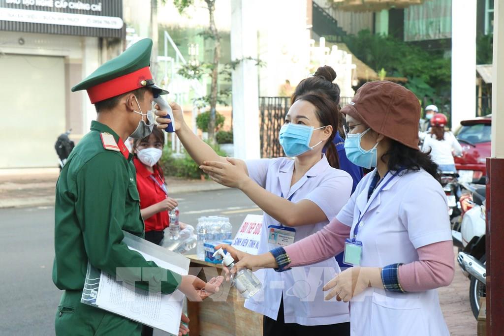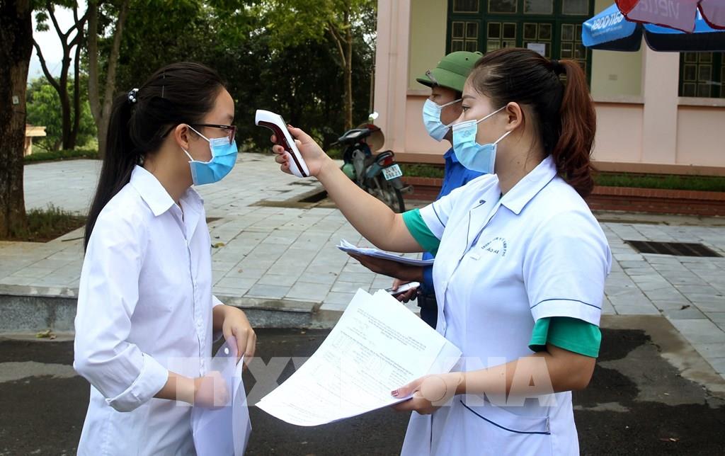 Thí sinh được kiểm tra y tế trước khi vào thi tại Điểm thi Trường Trung học phổ thông Buôn Ma Thuột, thành phố Buôn Ma Thuột. Ảnh: Tuấn Anh – TTXVN