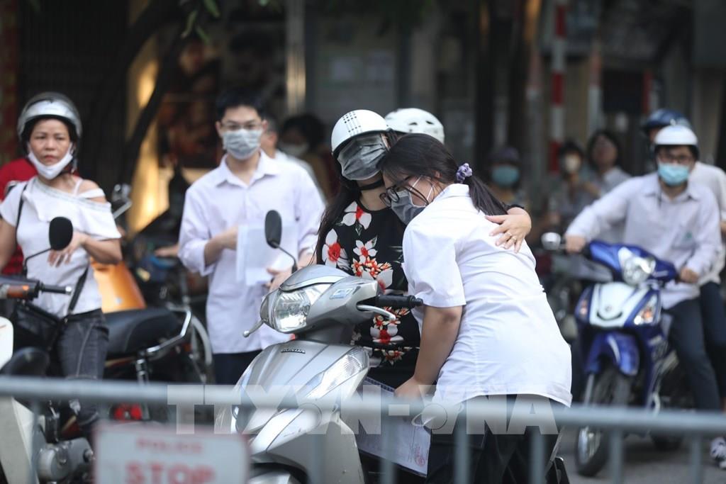 Thí sinh đến thi tại điểm thi trường THPT Nguyễn Gia Thiều (quận Long Biên, Hà Nội). Ảnh: TTXVN