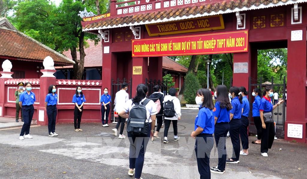 Các thí sinh đã đến trường chuẩn bị bước vào môn thi đầu tiên. Ảnh: Tường Vi - TTXVN.