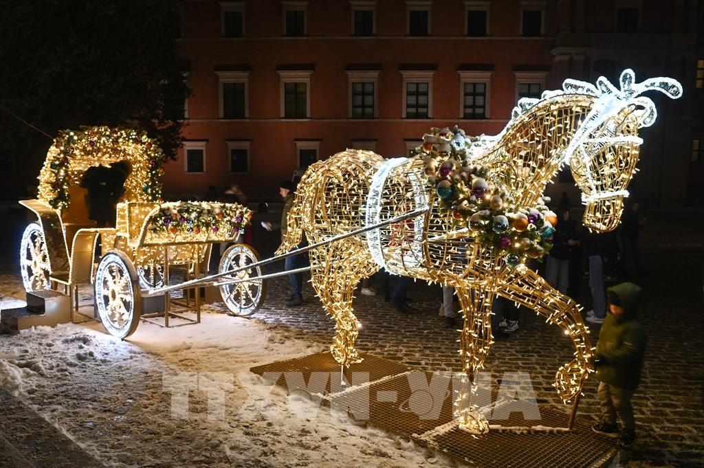 Đường phố được trang hoàng đón Giáng sinh tại Vacsava, Ba Lan, ngày 7/12/2023. Ảnh: THX/TTXVN