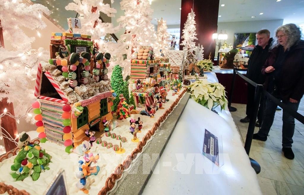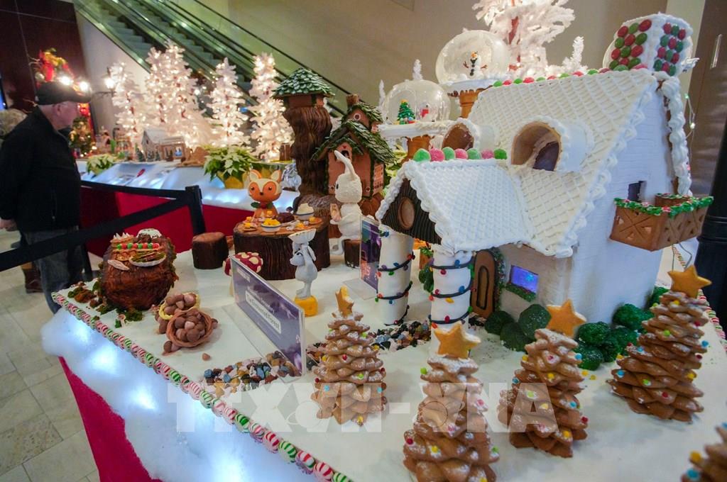 Những ngôi nhà bánh gừng chào đón Giáng sinh được trưng bày tại Vancouver, British Columbia, Canada, ngày 5/12/2023. Ảnh: THX/TTXVN