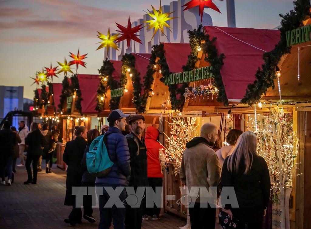 Người dân thăm chợ Giáng sinh tại Vancouver, British Columbia, Canada, ngày 16/11/2023. Ảnh: THX/TTXVN