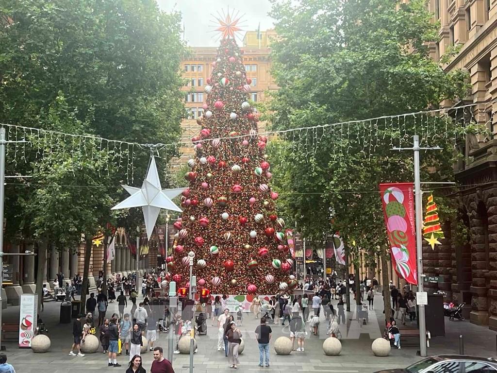 08:31' - 19/12/2025Chưa đầy một tuần nữa là đến Giáng sinh, tại "xứ sở Chuột túi" Australia không khó để bắt gặp những ngôi nhà được trang trí rực rỡ với hình ảnh ông già Noel, xe tuần lộc, người tuyết, hay thậm chí là những chú Kangaroo kéo xe, cây thông khổng lồ cao chọc trời. Những cửa hàng, cửa hiệu được trang hoàng lung linh đầy màu sắc, các tòa nhà được trang trí bởi nghệ thuật sắp đặt ánh sáng trở thành bức tranh tuyệt đẹp chào đón kỳ nghỉ an lành.