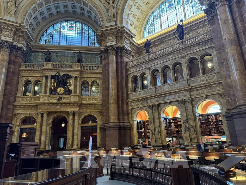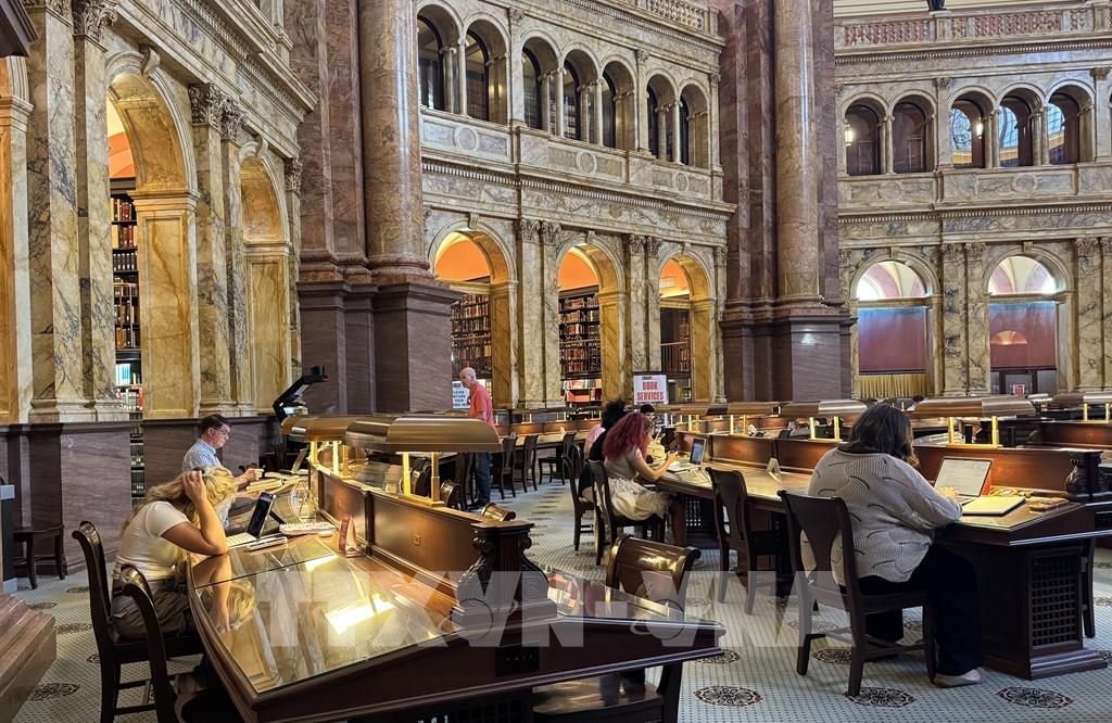 11:11' - 14/06/2024Nằm ngay đối diện với Tòa nhà Quốc hội Mỹ, Thư viện Quốc hội có kiến trúc lộng lẫy với mái vòm lớn bao phủ phòng đọc trung tâm. Các chất liệu được dùng để xây dựng thư viện khổng lồ này đều rất đắt tiền như: đá cẩm thạch, đồng, vàng, gỗ gụ…Đây là những chất liệu giúp cho công trình có thể bền vững và tồn tại hàng nghìn năm. Tại thư viện Quốc hội Mỹ, có một khu vực phòng đọc dành cho những người nghiên cứu về lịch sử các nước Đông Nam Á với nhiều tư liệu lâu đời liên quan đến lịch sử Việt Nam.