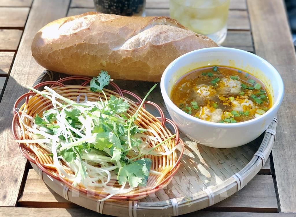 Bánh mì xíu mại - đặc sản của quán Bánh mì xíu mại Đà Lạt, đường Nguyễn Văn Tráng, quận 1 (TP. HCM). Ảnh: Mỹ Phương - TTXVN