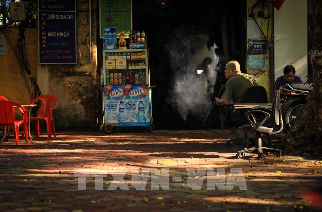 Những khung cảnh đời thường bỗng trở thành bức tranh nhờ những tia nắng ban mai một sớm thu. Ảnh: Thành Đạt - TTXVN