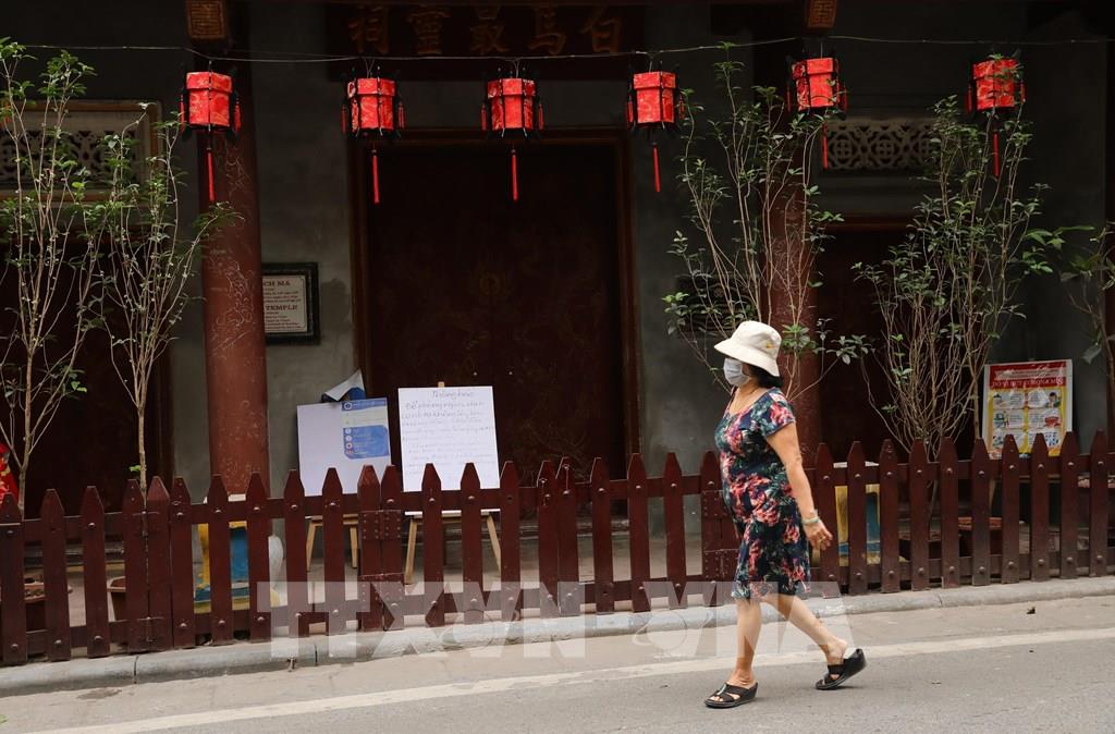 Đình Kim Ngân (phố Hàng Bạc, quận Hoàn Kiếm) đóng cửa theo quy định và hướng dẫn người dân phòng, chống dịch bệnh Covid-19. Ảnh: Lâm Khánh - TTXVN