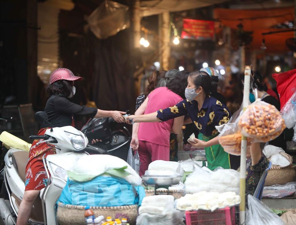 Những gian hàng không thuộc danh mục phải đóng cửa vẫn mở cửa bán hàng bình thường phục vụ người dân. Ảnh: Thanh Tùng-TTXVN
