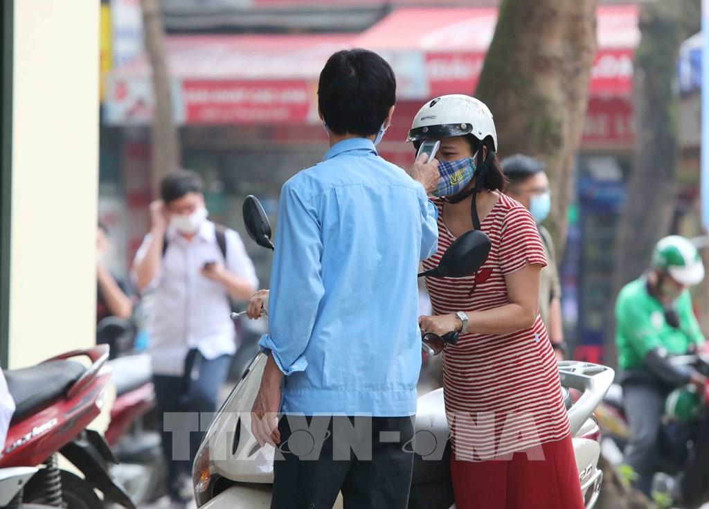 Học sinh trường THPT Việt Đức, quận Hoàn Kiếm trở lại trường sáng 4/5. Ảnh: Thành Đạt - TTXVN