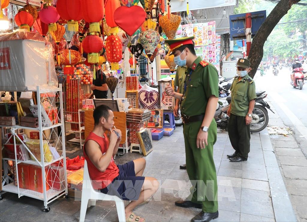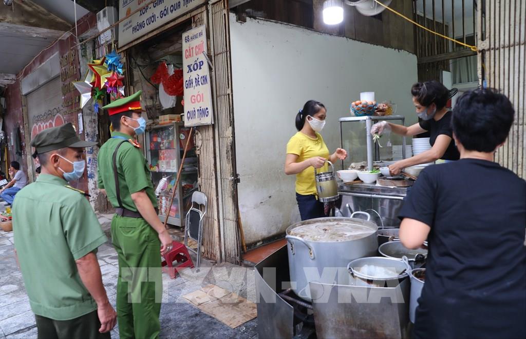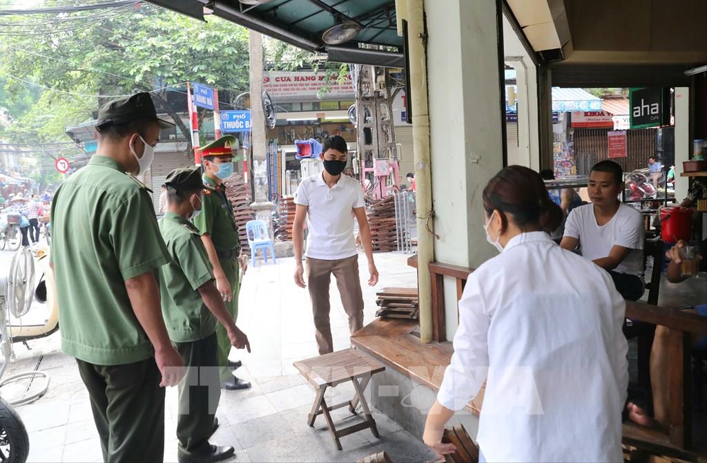 10:08' - 20/08/2020Để phòng, chống dịch bệnh COVID-19, sáng 20/8, các lực lượng chức năng Hà Nội tiếp tục ra quân nhắc nhở nhân dân thực hiện nghiêm túc việc giãn cách, đeo khẩu trang nơi công cộng; đồng thời yêu cầu các hộ kinh doanh dịch vụ, trung tâm thương mại phải trang bị nước rửa tay sát khuẩn, máy đo thân nhiệt; trong đó các cửa hàng kinh doanh ăn uống cần đảm bảo giãn cách chỗ ngồi tối thiểu 1m, khuyến khích có vách ngăn, nhân viên và người bán hàng phải đeo khẩu trang trong suốt quá trình phục vụ...
