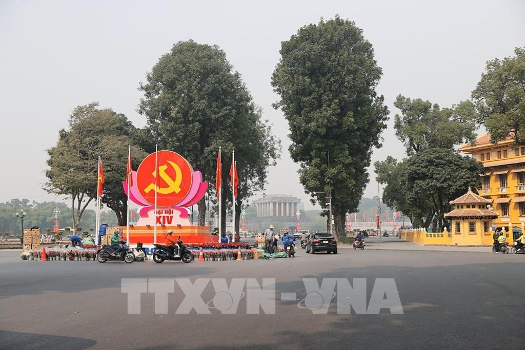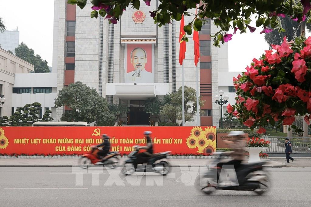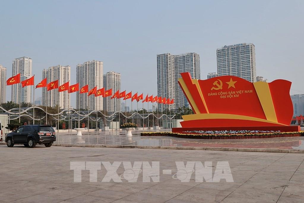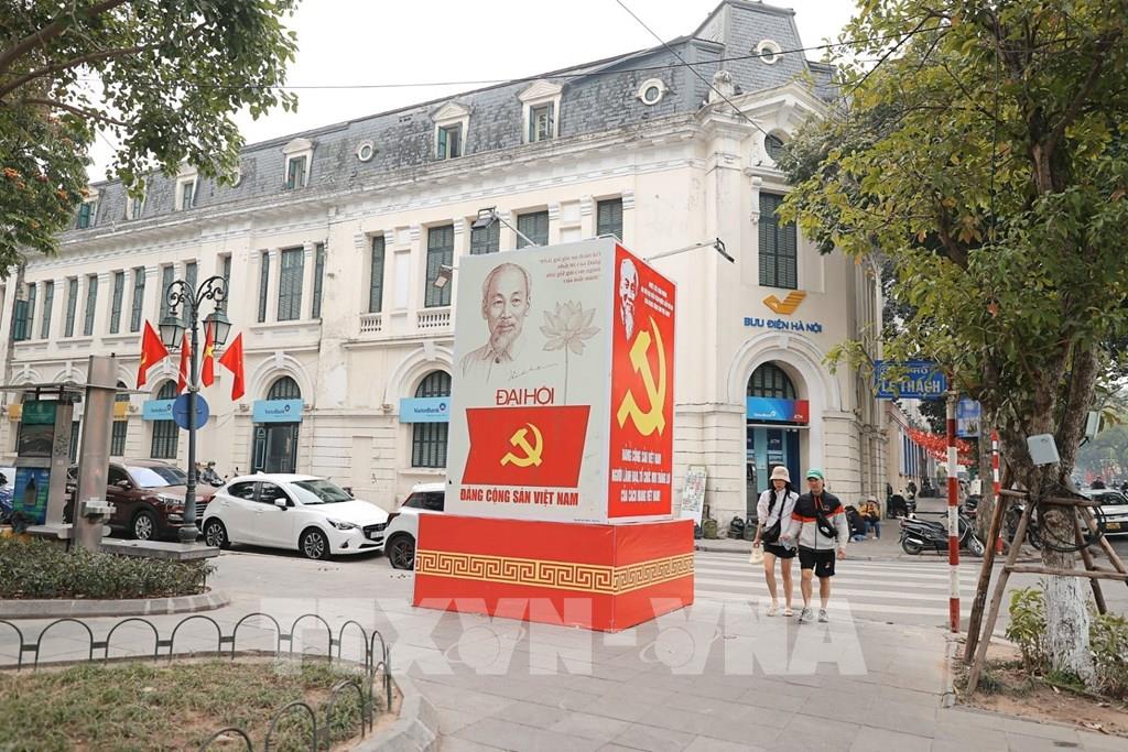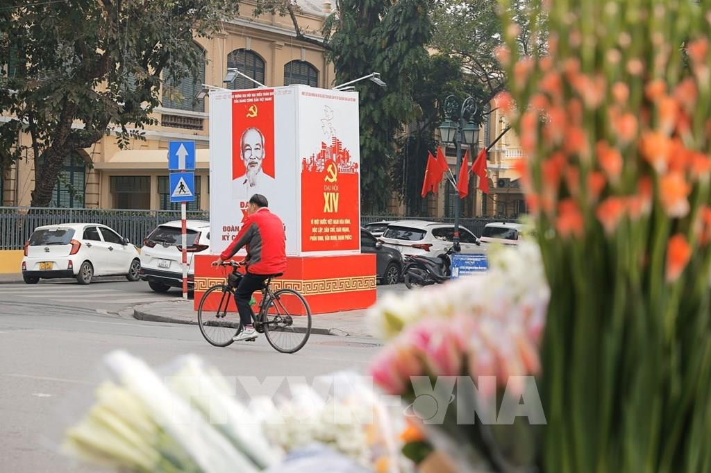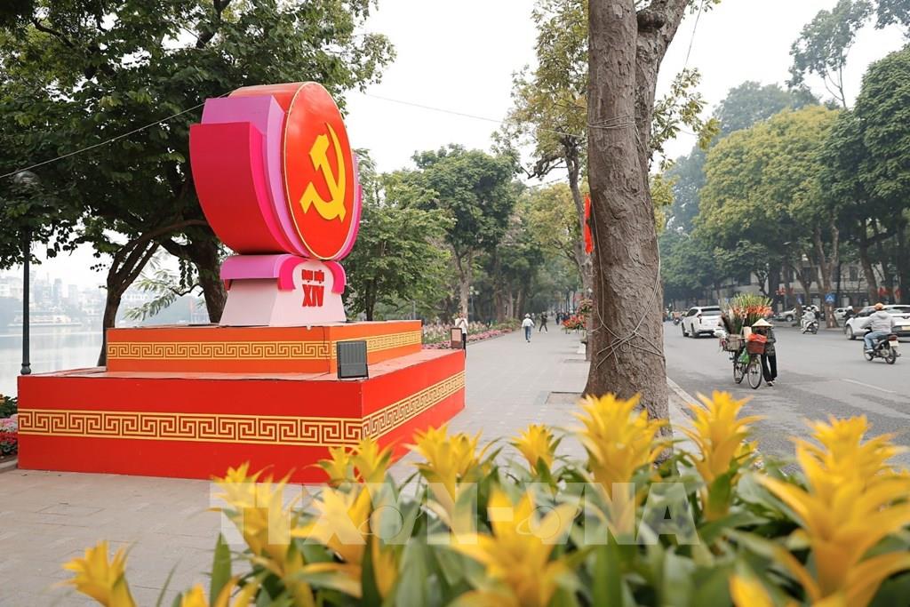 Pano, áp phích, biểu trưng Đại hội XIV được trang hoàng trên các tuyến phố. Ảnh: Minh Quyết – TTXVN