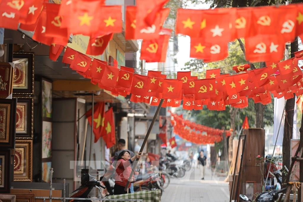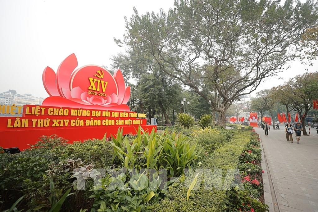 Không khí chào mừng sự kiện chính trị trọng đại của đất nước lan tỏa rộng khắp, thể hiện niềm tin, niềm tự hào và sự đồng thuận của Nhân dân Thủ đô hướng về Đại hội. Ảnh: Minh Quyết – TTXVN