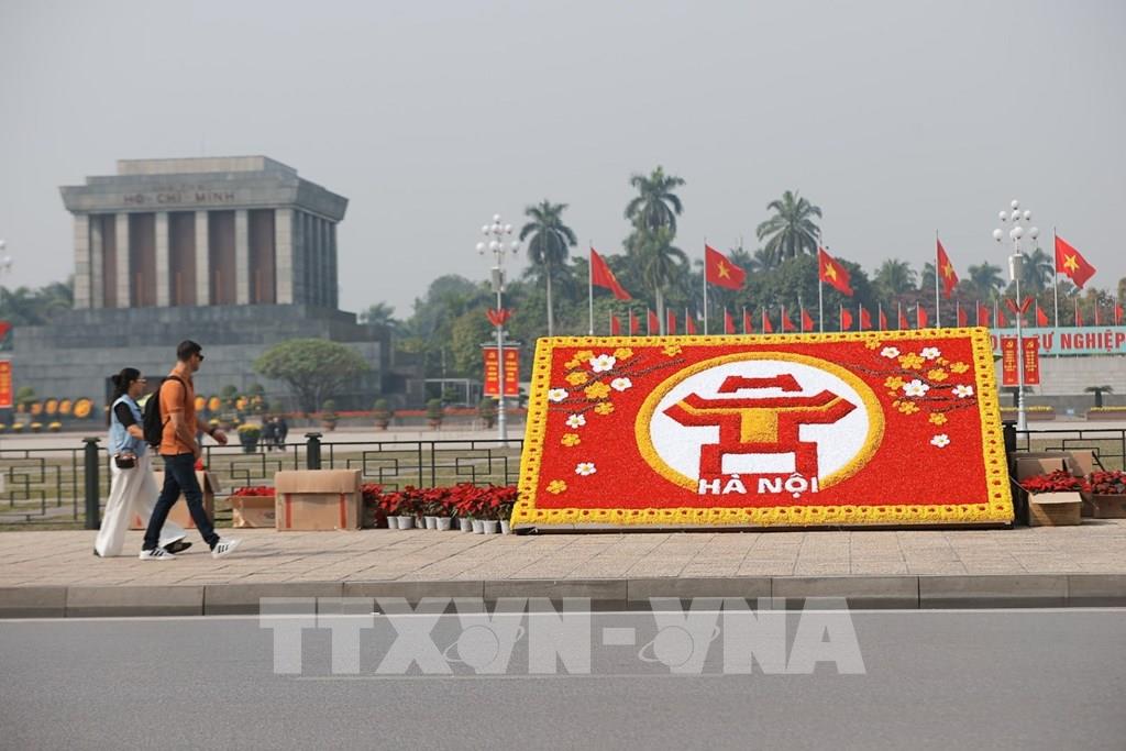 Trang trí hoa tươi quanh khu vực hồ Hoàn Kiếm. Ảnh: Minh Quyết - TTXVN