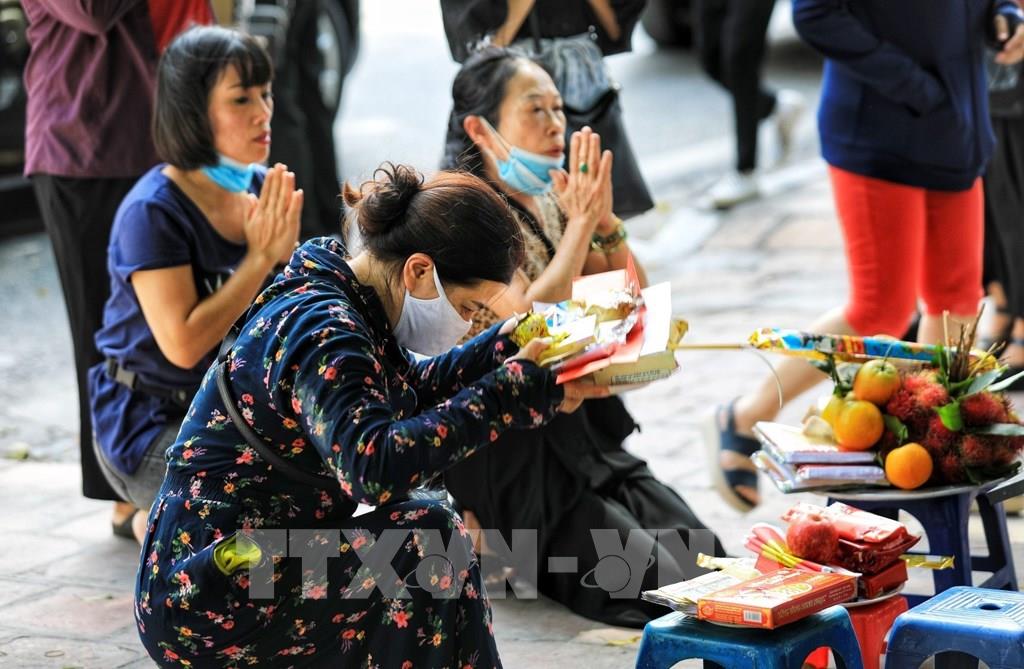 Ngày cuối tuần, nhiều phụ huynh đưa con em đến các cơ sở thờ tự để làm lễ cầu may mắn trước ngày thi tốt nghiệp THPT Quốc gia. Ảnh: Thành Đạt - TTXVN