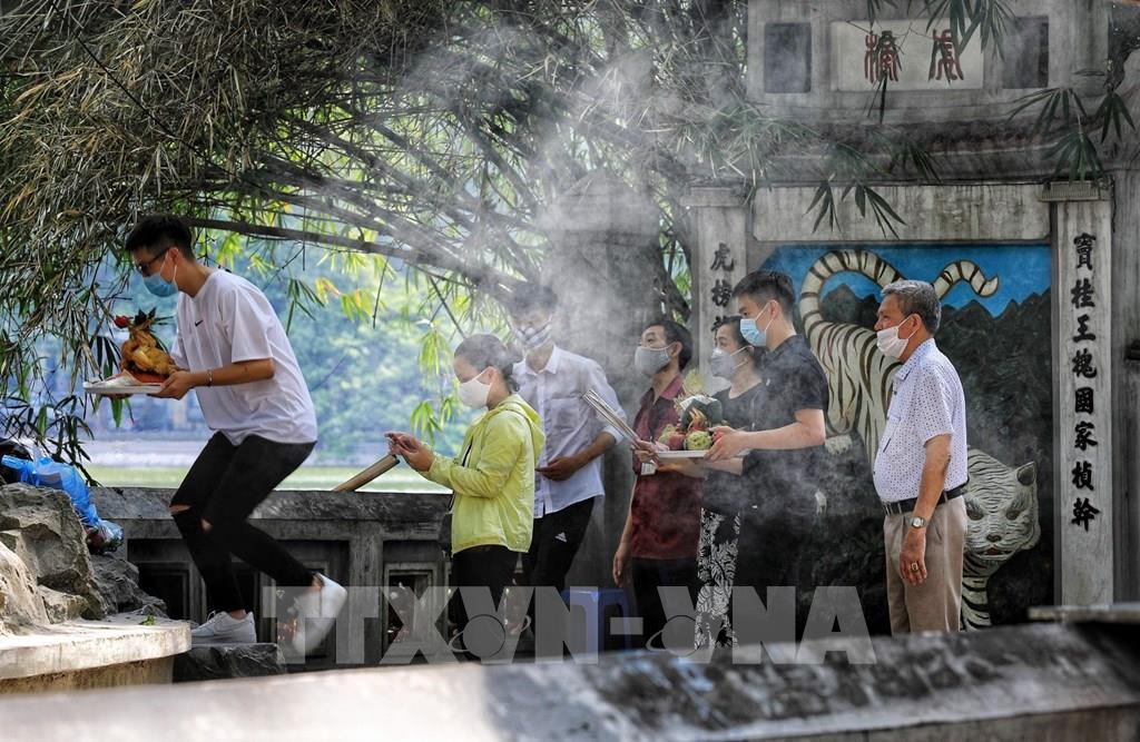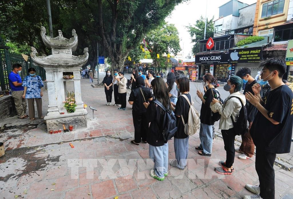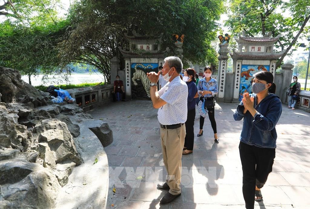 Do tình hình dịch bệnh COVID-19 vẫn còn diễn biến phức tạp, nhiều bậc phụ huynh chọn điểm lễ vắng người hơn như đền Ngọc Sơn để cầu may cho các sĩ tử. Ảnh: Thành Đạt - TTXVN