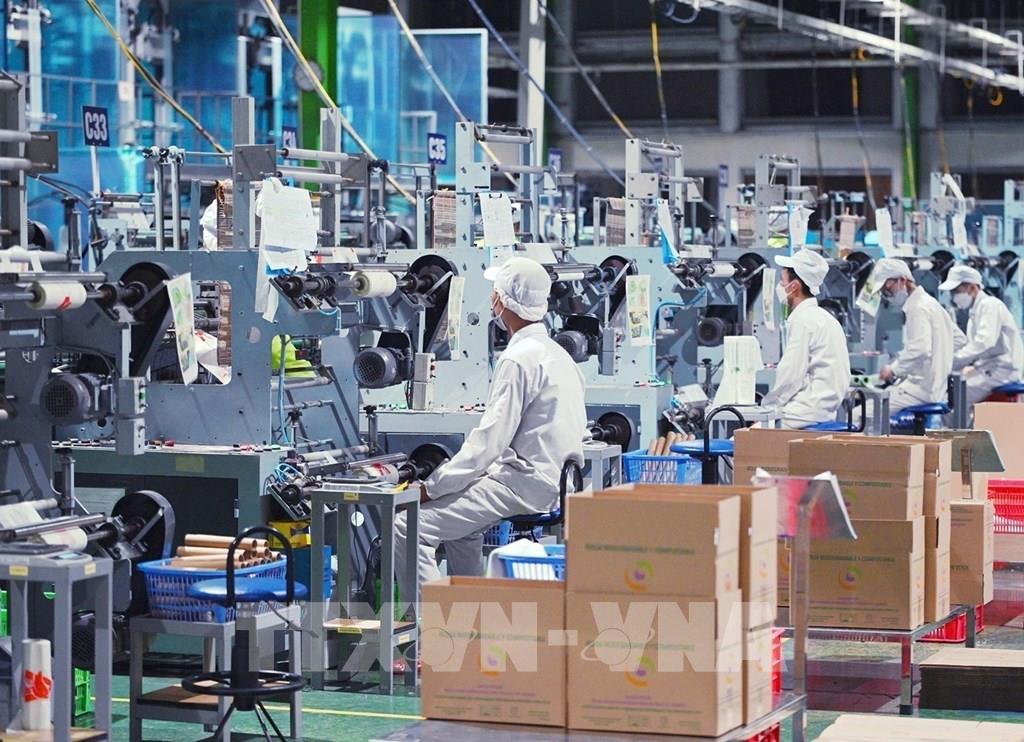 Dây chuyền sản xuất sản phẩm sinh học tự phân hủy hoàn toàn tại nhà máy số 6 Công ty An Phát Bioplastic (thành viên của An Phat Holdings), Nam Sách, Hải Dương. Ảnh: Tuấn Anh - TTXVN