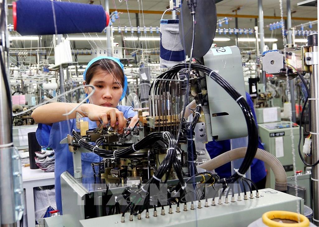 Dây chuyền dệt của Công ty TNHH Jasan Việt Nam; vốn đầu tư của Hong Kong (Trung Quốc) tại Khu đô thị; công nghiệp và dịch vụ VSIP Hải Phòng. Ảnh: Danh Lam - TTXVN