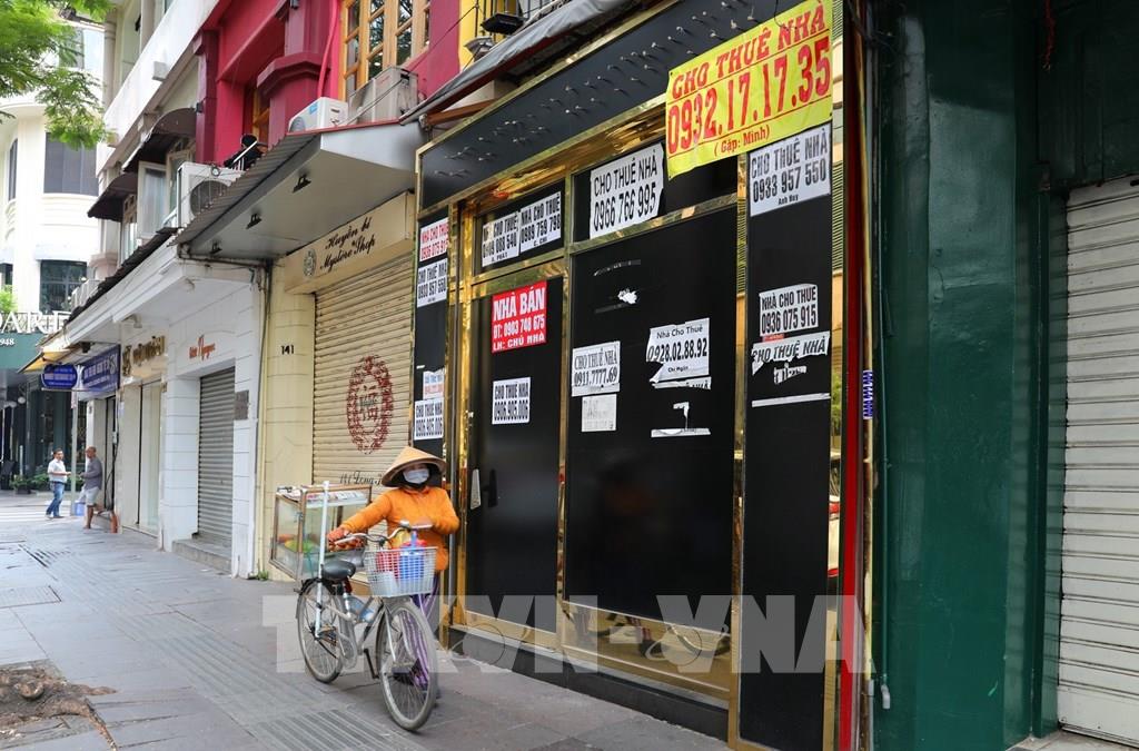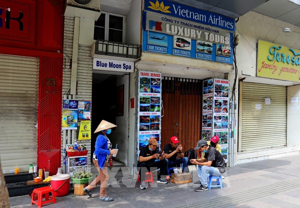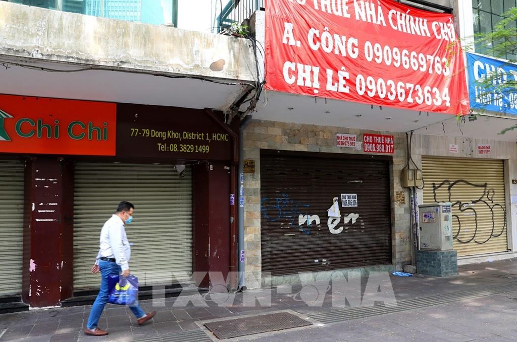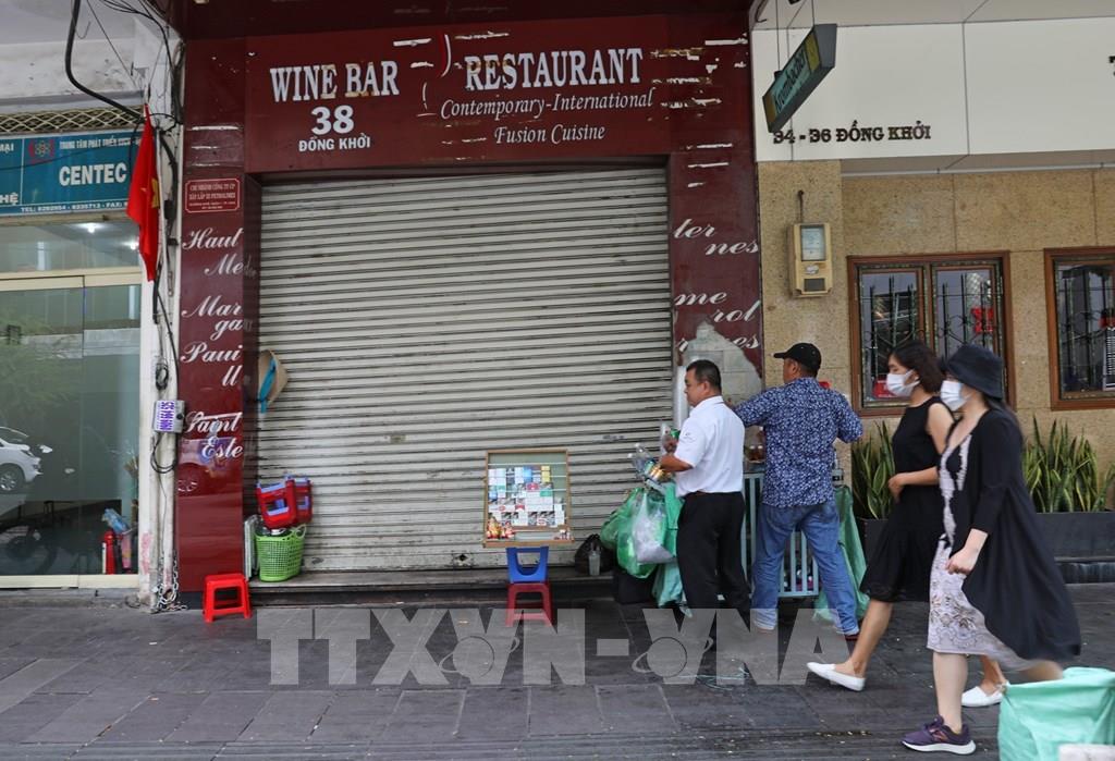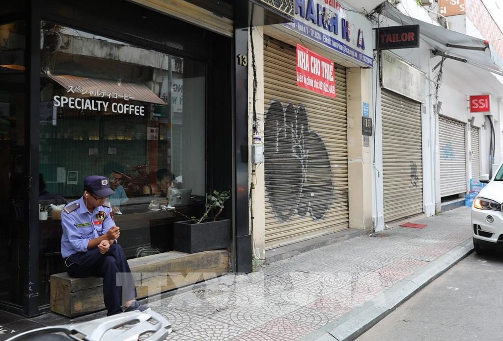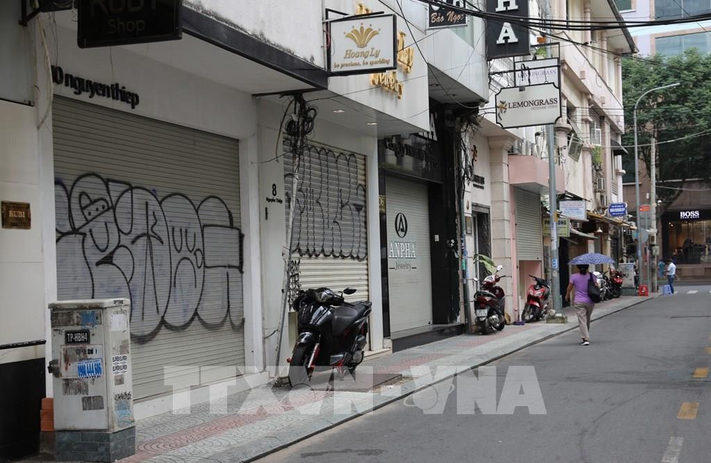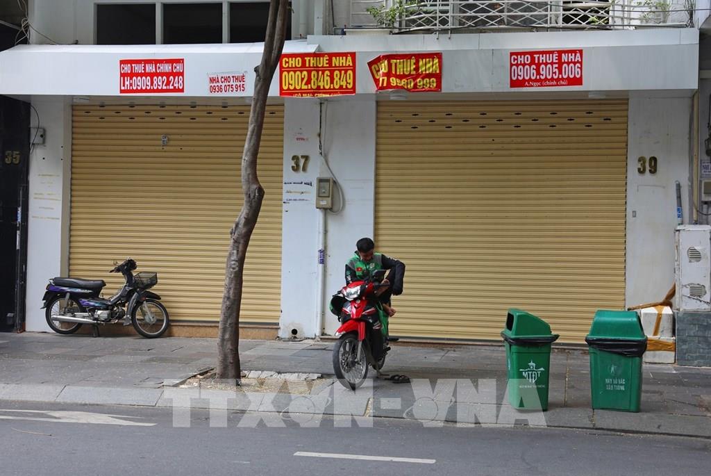 Nhiều cửa hàng trên đường Nguyễn Thiệp phải đóng cửa do COVID-19 . Ảnh: Ngọc Hà - TTXVN