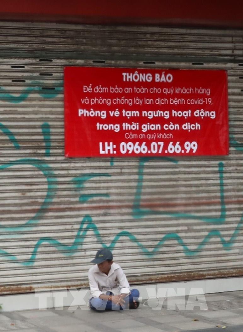 Một đại lý bán vé máy bay trên đường Nam Kỳ Khởi Nghĩa treo biển thông báo đóng cửa tạm ngừng hoạt động. Ảnh: Ngọc Hà - TTXVN