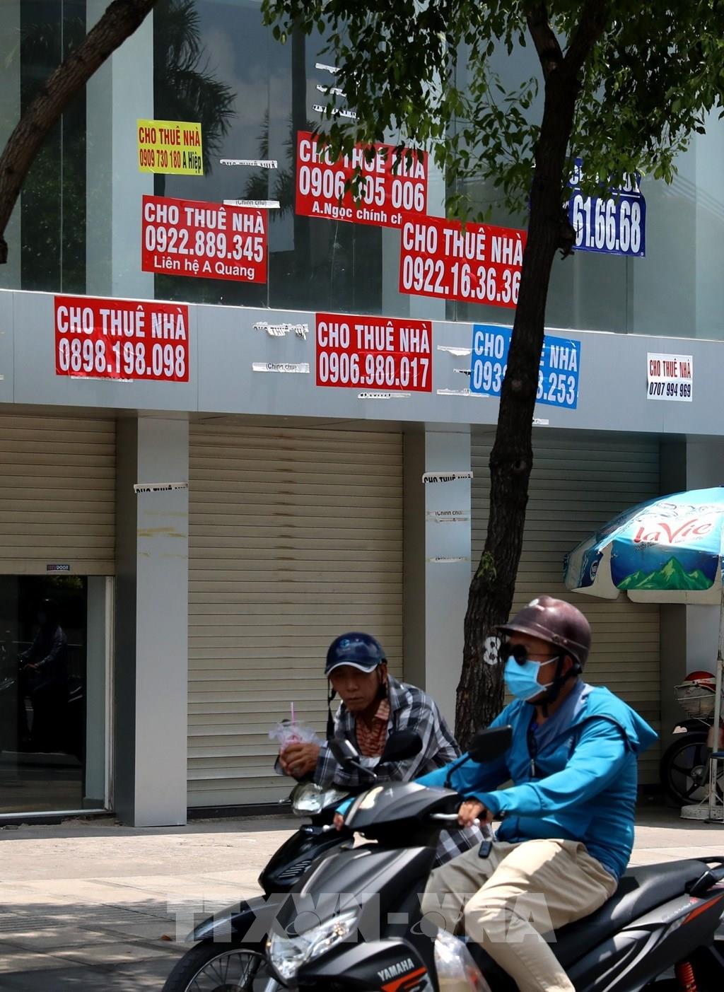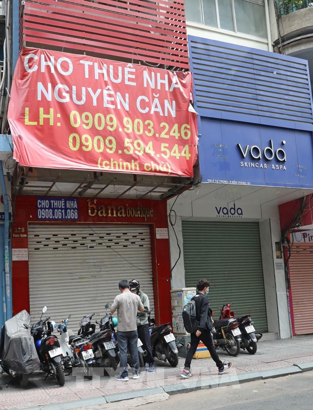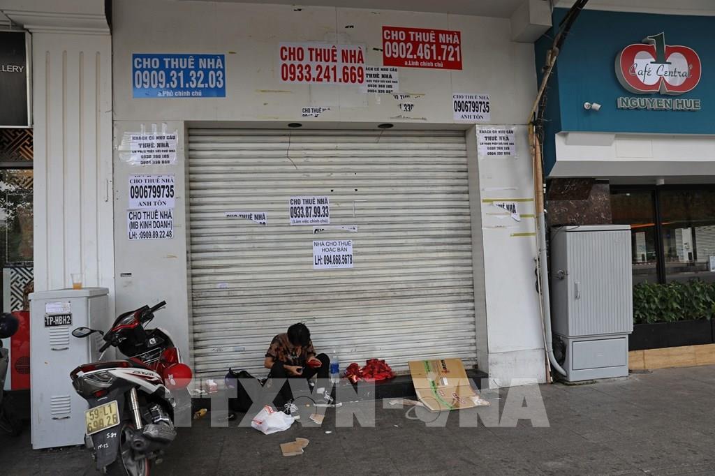 Nhiều cửa hàng trên đường Lý Tự Trọng đã phải đóng cửa, treo biển cho thuê lại do ế ẩm. Ảnh: Ngọc Hà - TTXVN