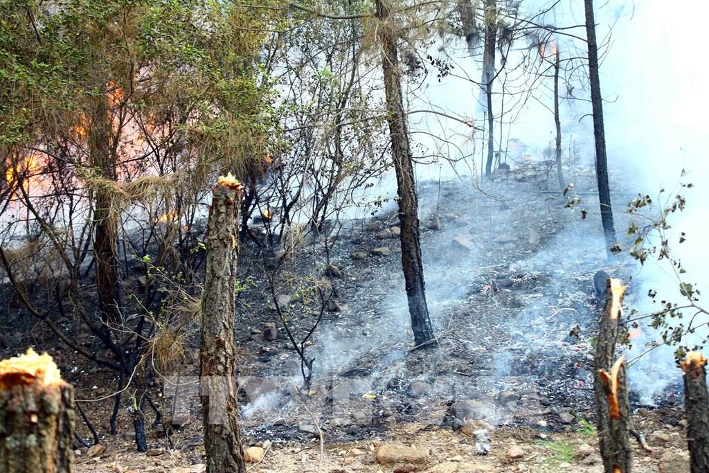 Nhiều diện tích rừng tại xã Diễn Lợi, huyện Diễn Châu (Nghệ An) bị thiêu rụi. Ảnh: Tá Chuyên - TTXVN