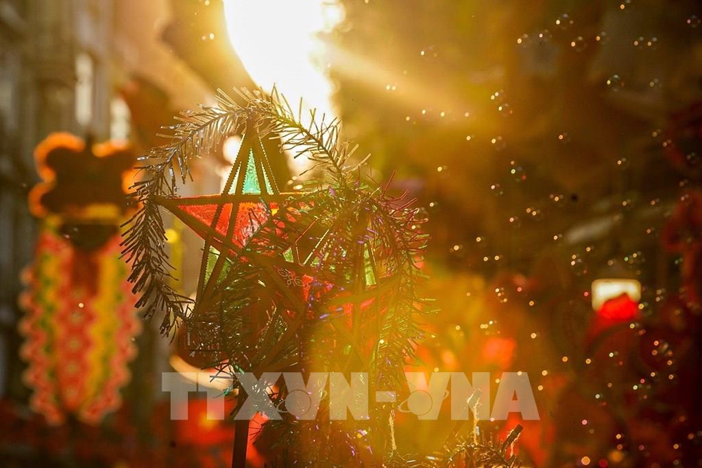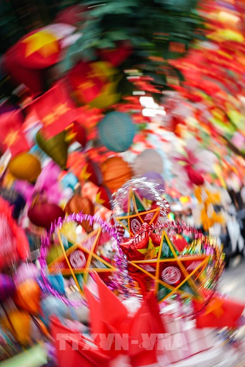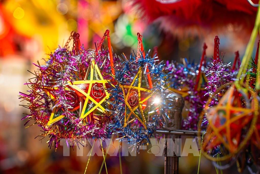 Đèn ông sao rực rỡ sắc màu Trung thu trên phố Hàng Mã. Ảnh: Khánh Hoà - TTXVN