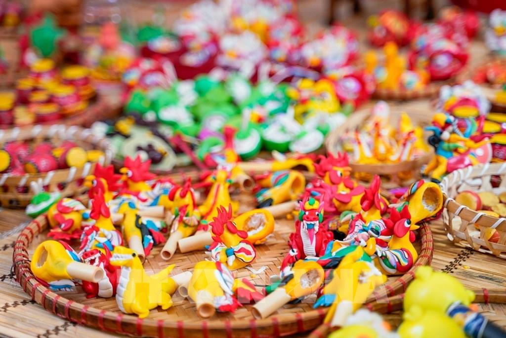 Tò he - đồ chơi trẻ em dân gian của Việt Nam được bày bán trên phố Hàng Mã. Ảnh: Khánh Hòa - TTXVN