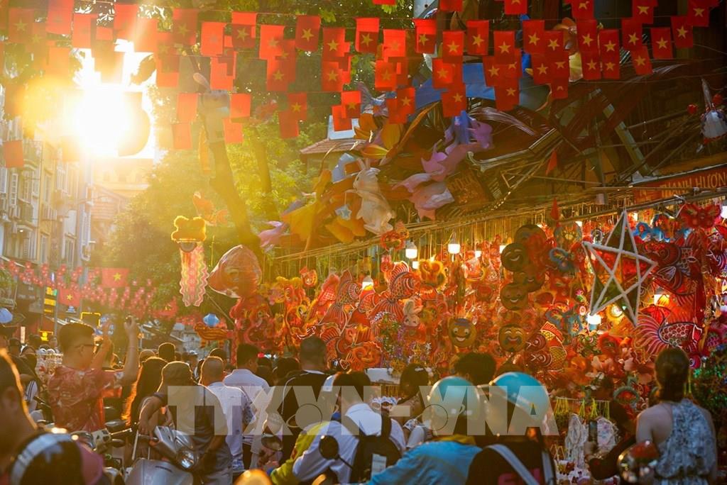 Không khí nhộn nhịp, rực rỡ sắc màu trên phố Hàng Mã những ngày cận Tết Trung thu. Ảnh: Khánh Hoà - TTXVN