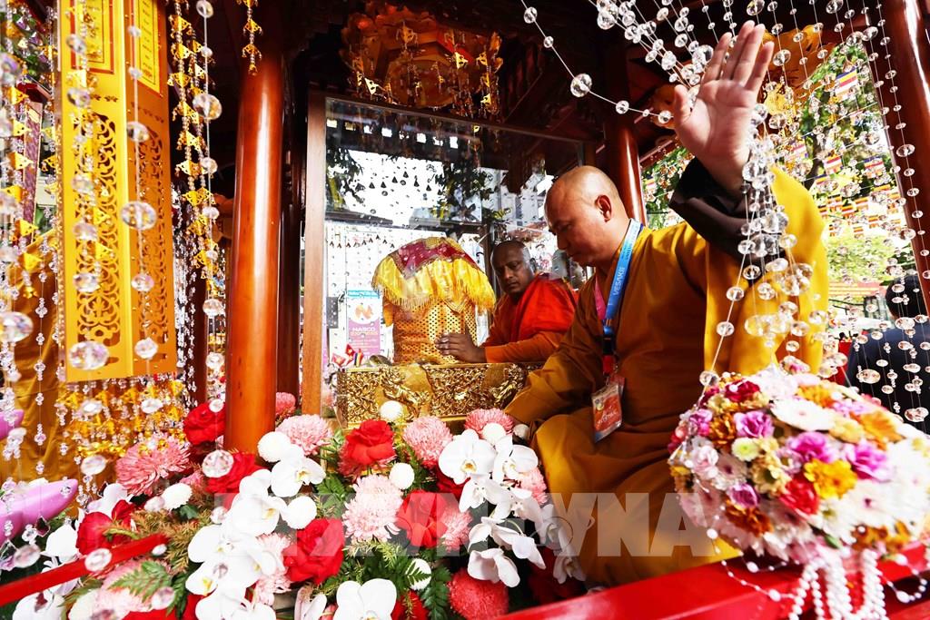 Xe rước Xá lợi Đức Phật. Ảnh: Tuấn Anh - TTXVN