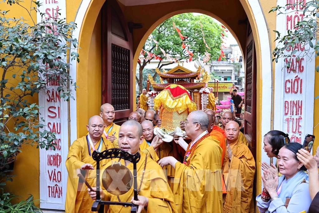Cung rước xá lợi Phật vào chùa Quán Sứ. Ảnh: Minh Đức – TTXVN