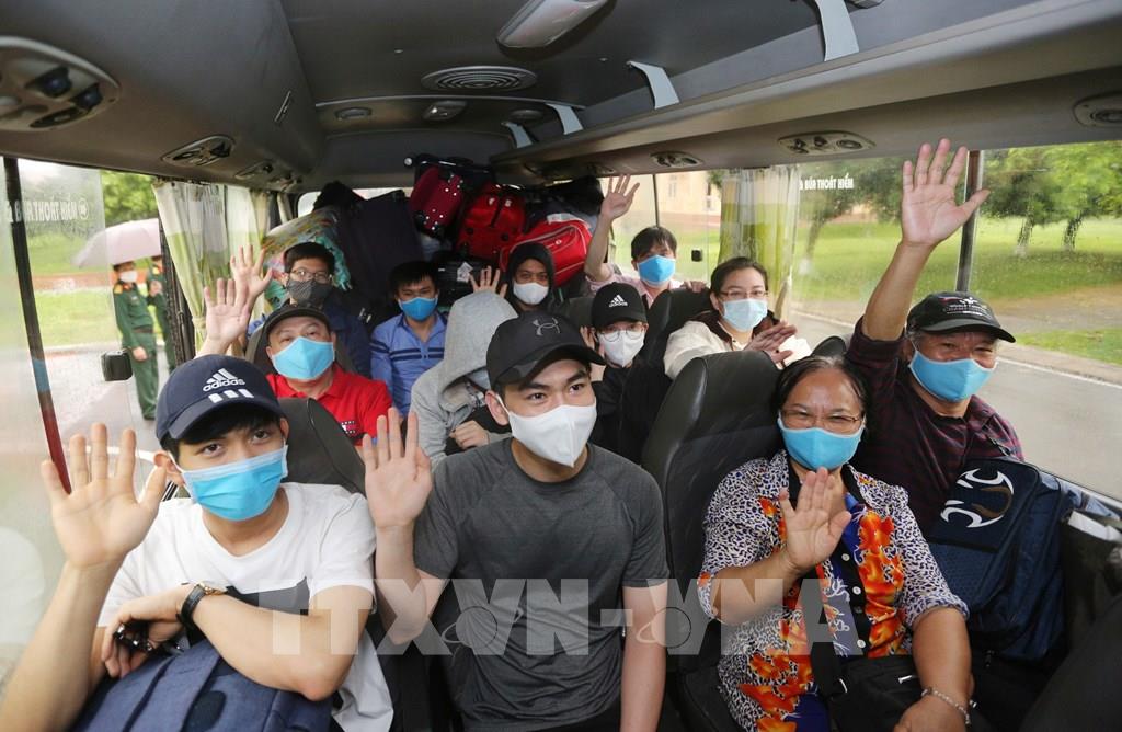 Các công dân đã hoàn thành thời gian cách ly tại Trung đoàn 58 trở về địa phương. Ảnh: Dương Giang - TTXVN