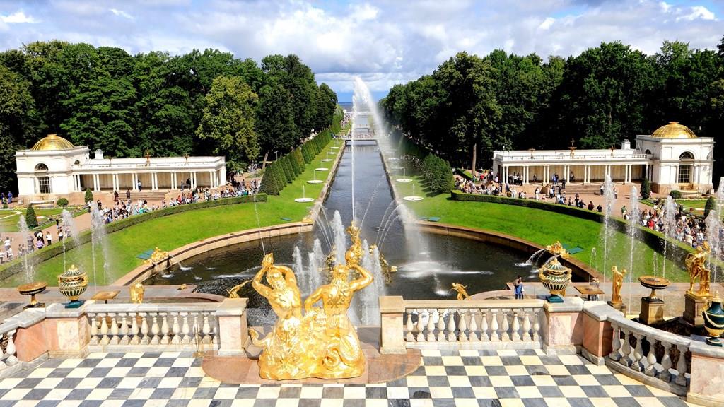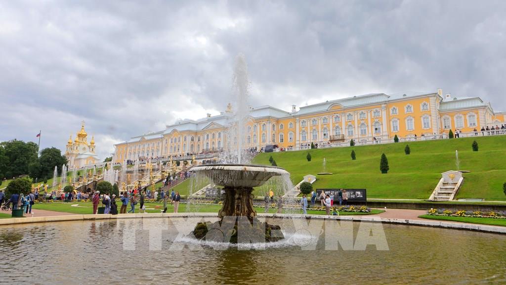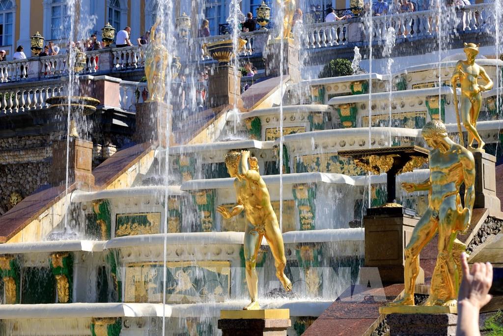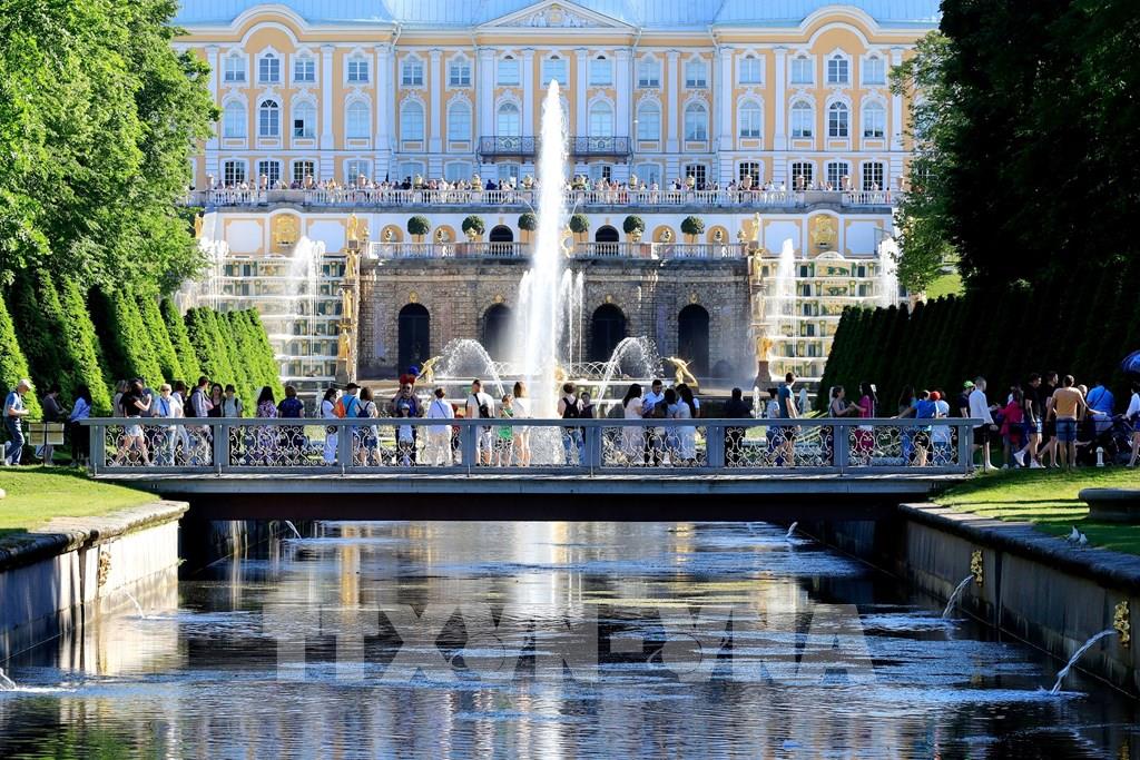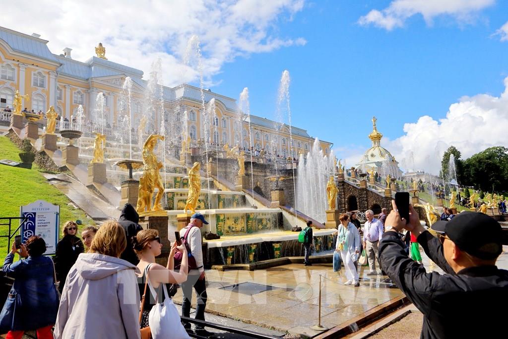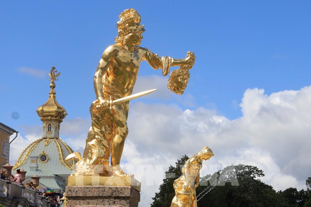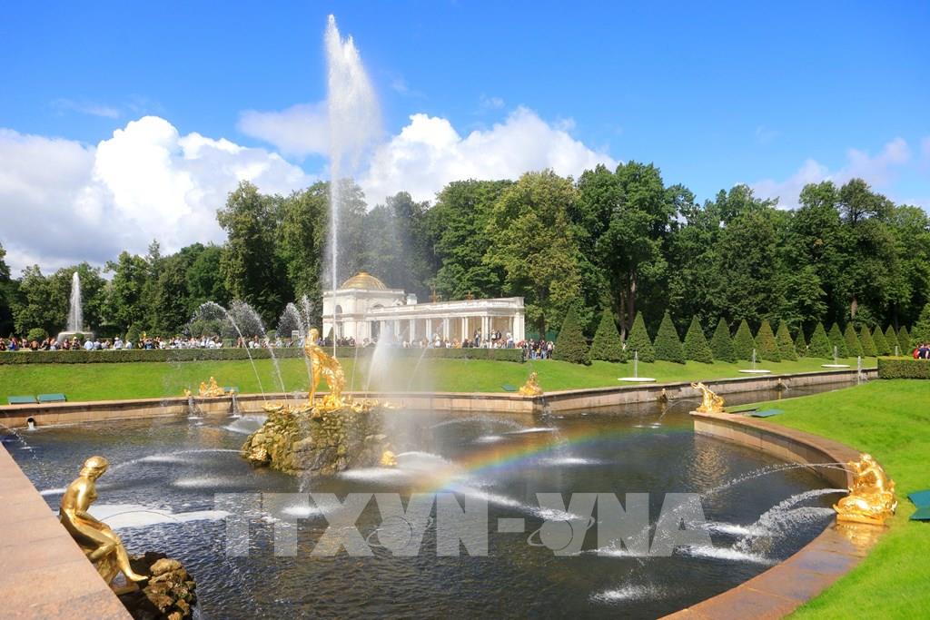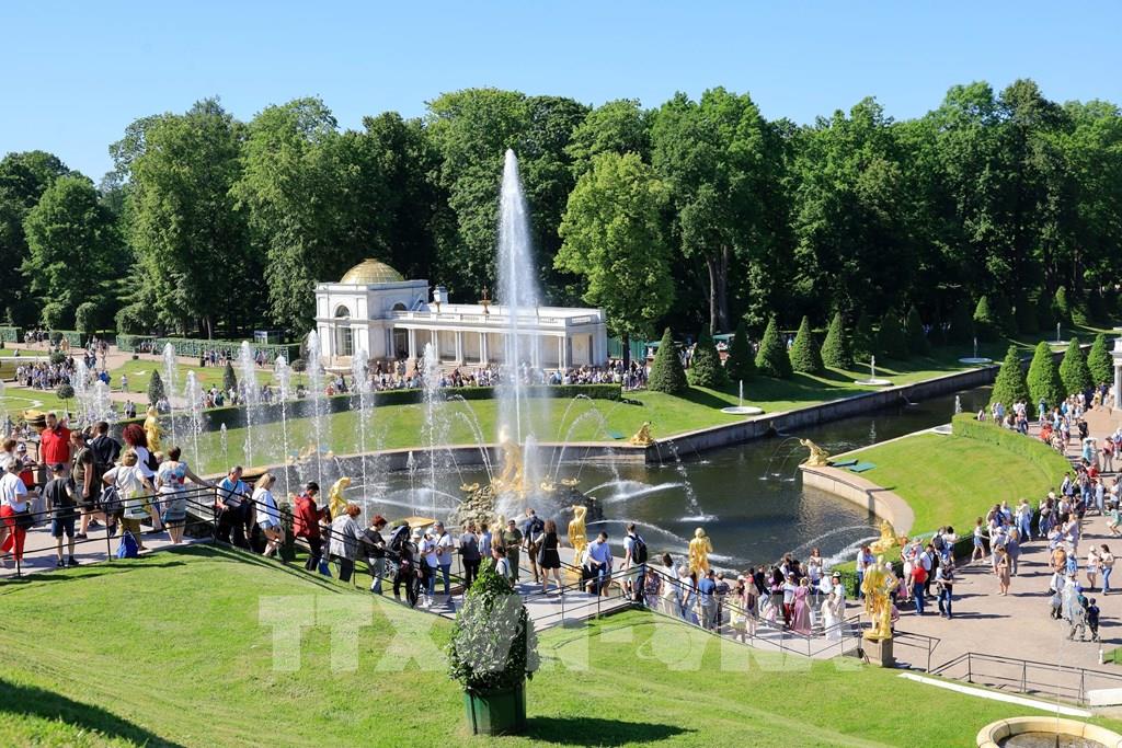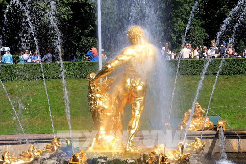 Với hệ thống đài phun nước độc đáo, quần thể cung điện và công viên Peterhof là một trong những địa chỉ du lịch nổi tiếng nhất nước Nga. Ảnh: Trần Hiếu - PV TTXVN